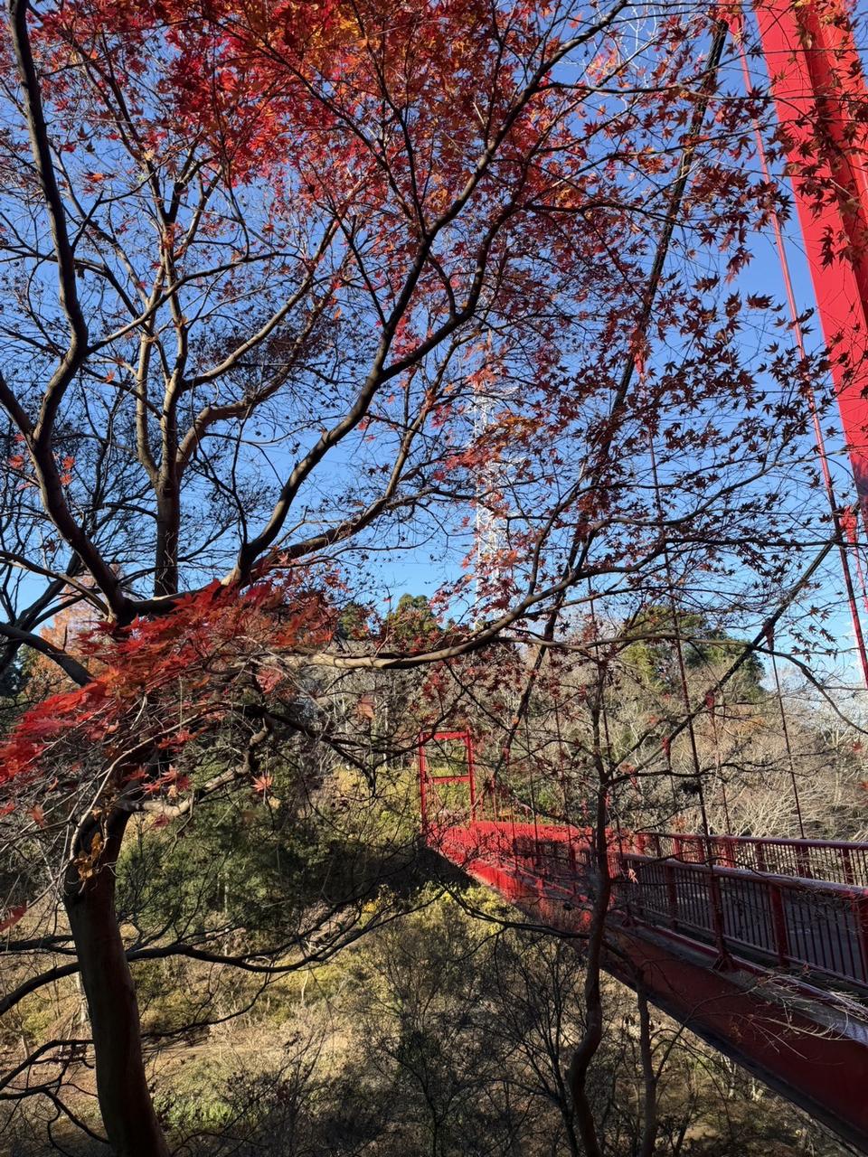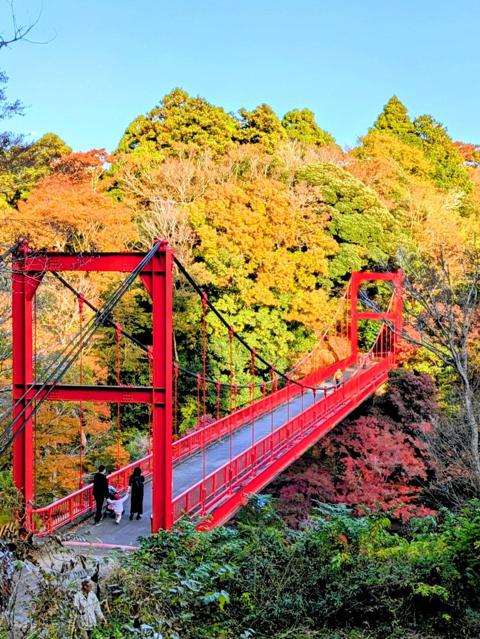 いずみ橋からの眺め(空の青と水辺に映える紅葉のコントラストが調和し、素晴らしい景色を楽しむ事がで出来ます。)