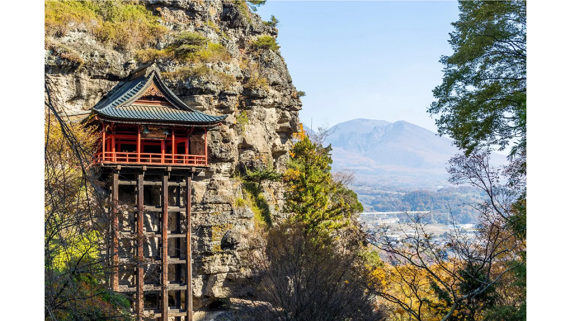「信濃耶馬渓」とも呼ばれ豪快な景観です。千曲川のほとりから険しい山道の参道を15分程のぼると、岩山の崖に築かれた観音堂が姿を現します。「牛に引かれて善光寺参り」の布引伝説でも有名です。歩きやすい服装でお出かけください。