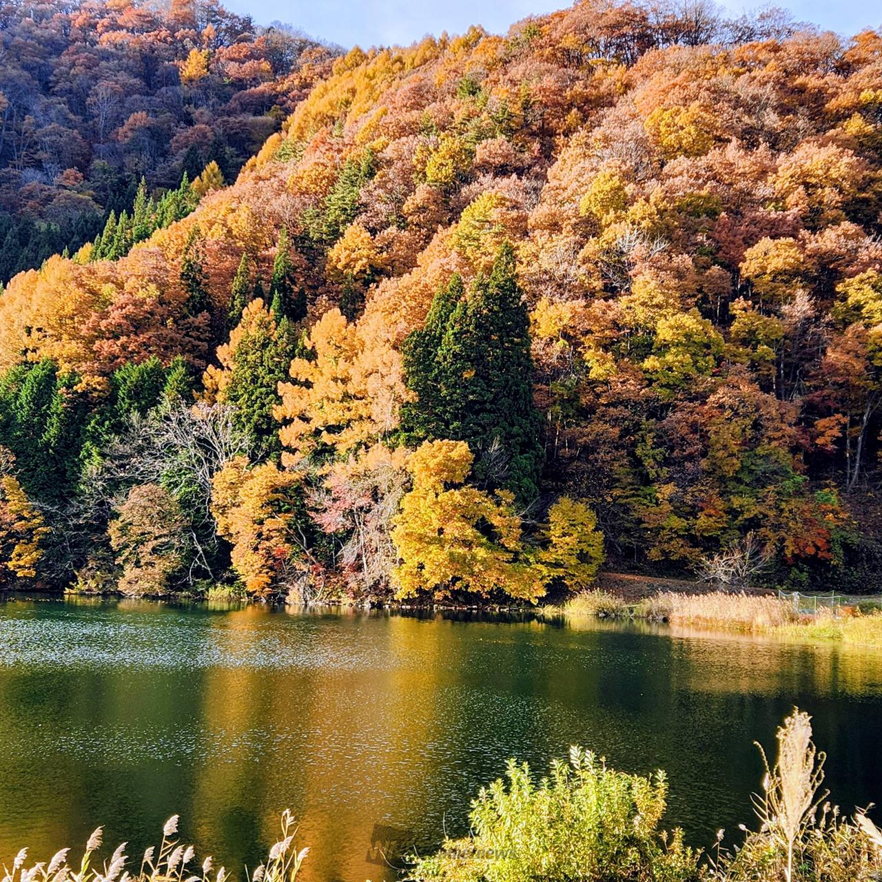 北葛沢(渓流と周辺の紅葉)、高瀬ダム湖や龍神湖(大町ダム湖)のエメラルドグリーンの湖面と周辺の紅葉