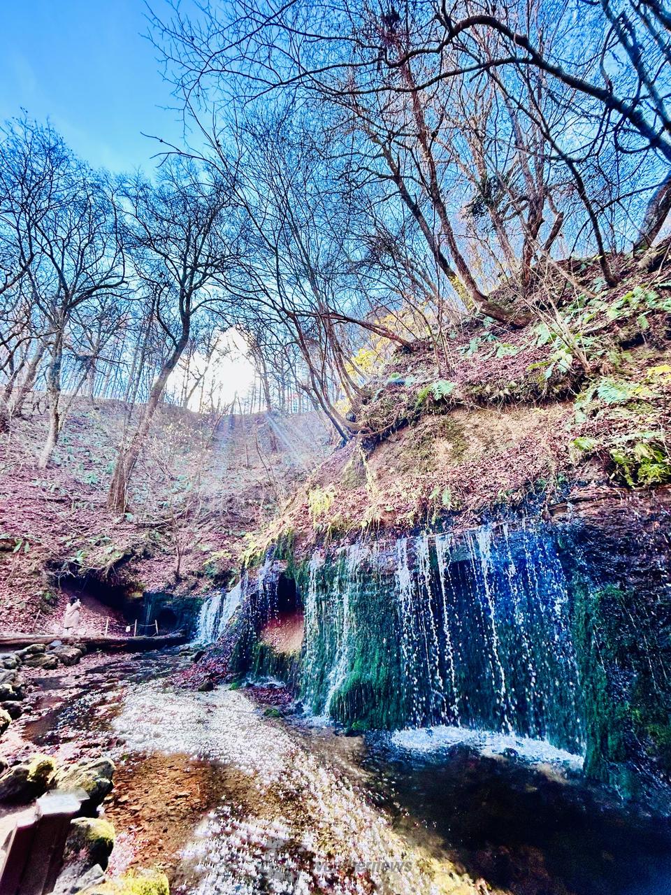 高さ3m、幅70mの岩肌より数百条の地下水が白糸のように落下する美しい滝です。マイナスイオンがヒーリング効果を高めると言われます。