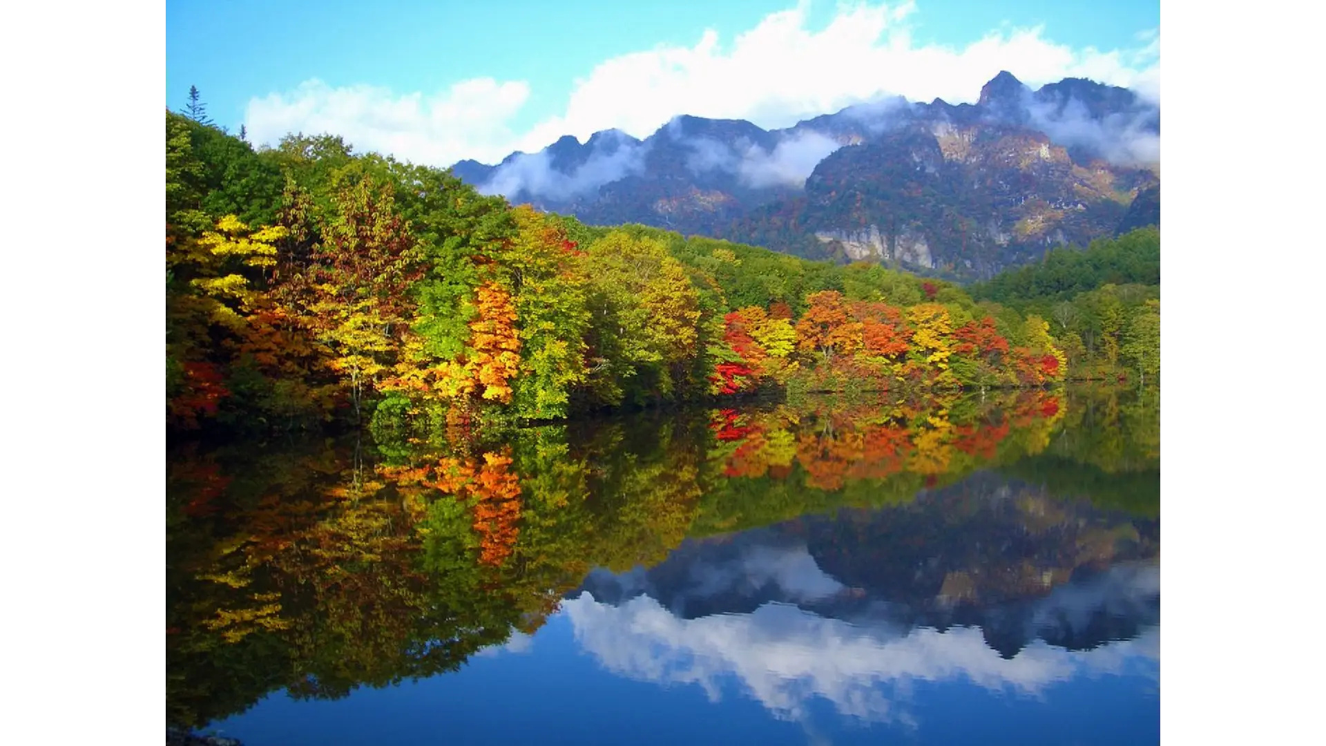 森を金色に染めるブナ、ミズナラ。宝石を思わせる真紅のナナカマドやカエデ。おもむき深く変化をするオオヤマザクラ。錦絵のような戸隠山連峰を映す鏡池は神秘的な美しさ。