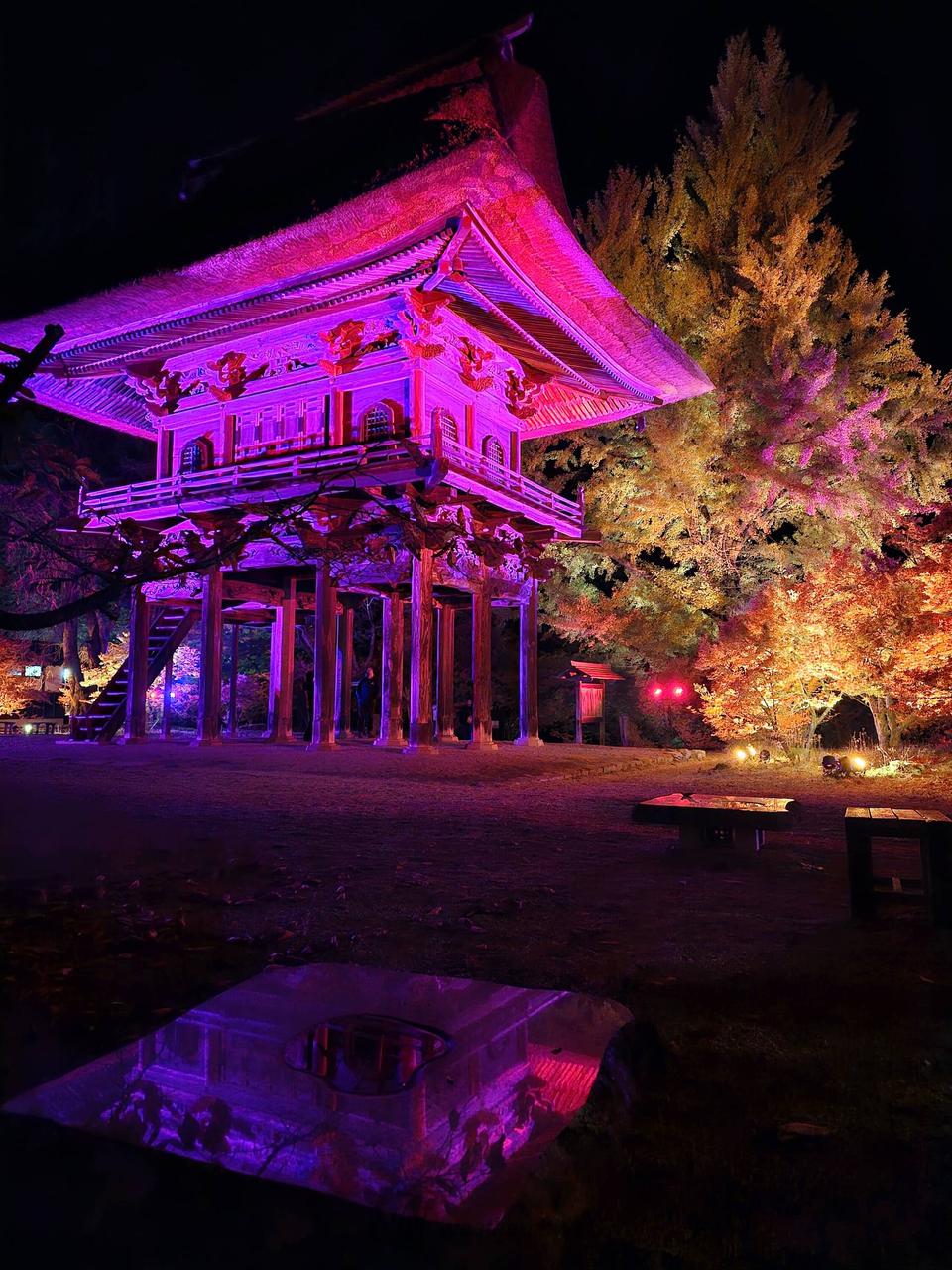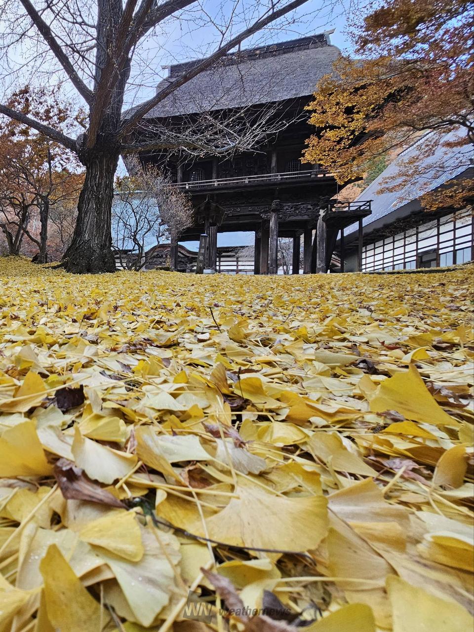 赤と黄色のコントラストが美しい秋には境内周辺の紅葉が楽しめます。葉にギンナンがついた珍しいオハツキイチョウの木が山門前にあります。