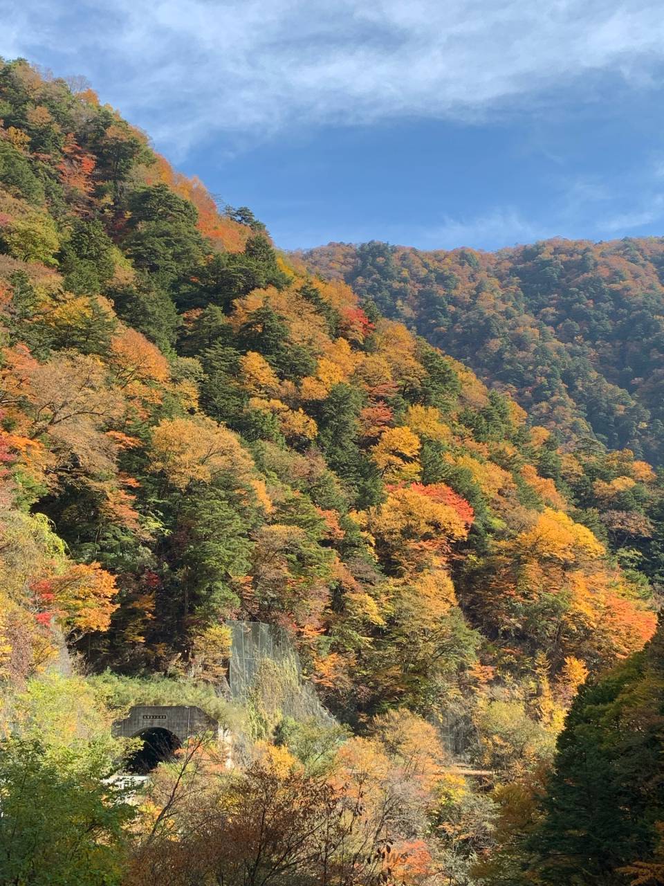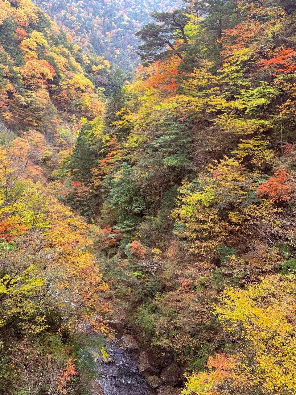 丹波山村から国道411号を柳沢峠方面に向かう約10kmの間、渓谷が続き、赤や黄色に色づいたブナ、ナラなどが見事です。