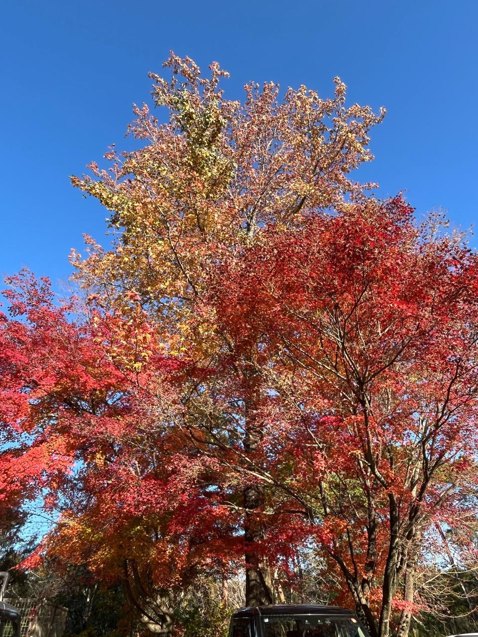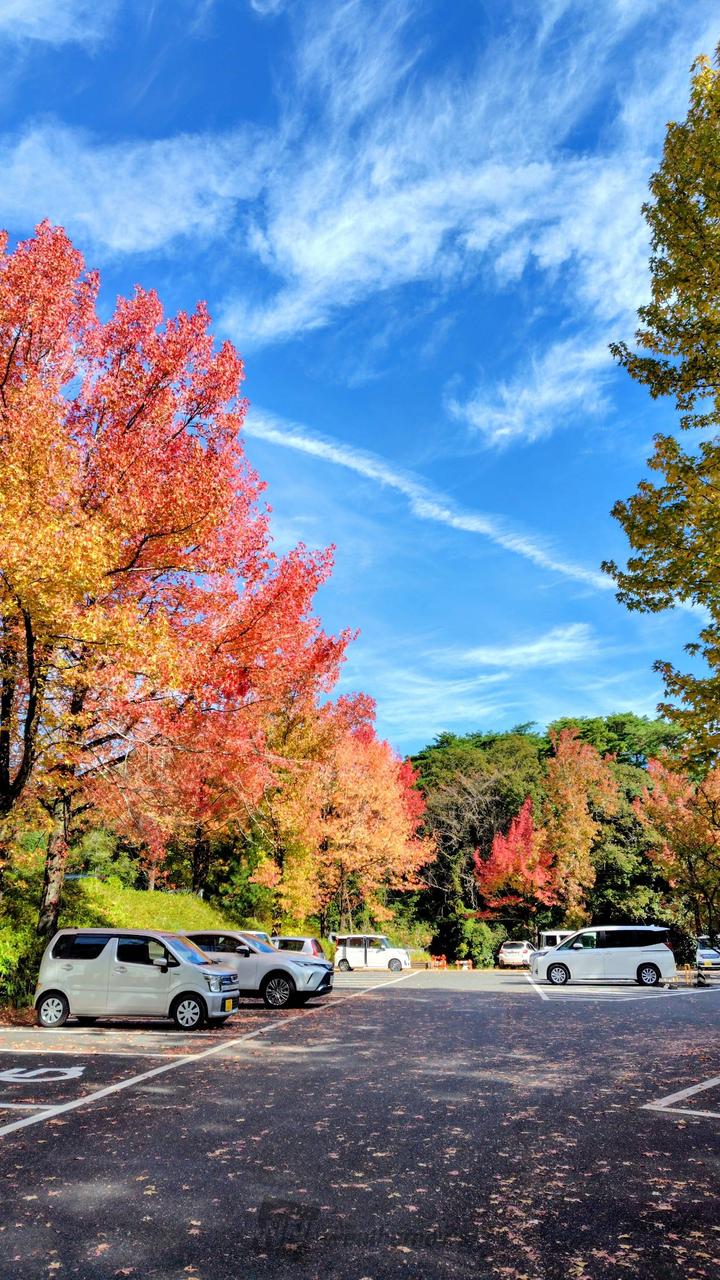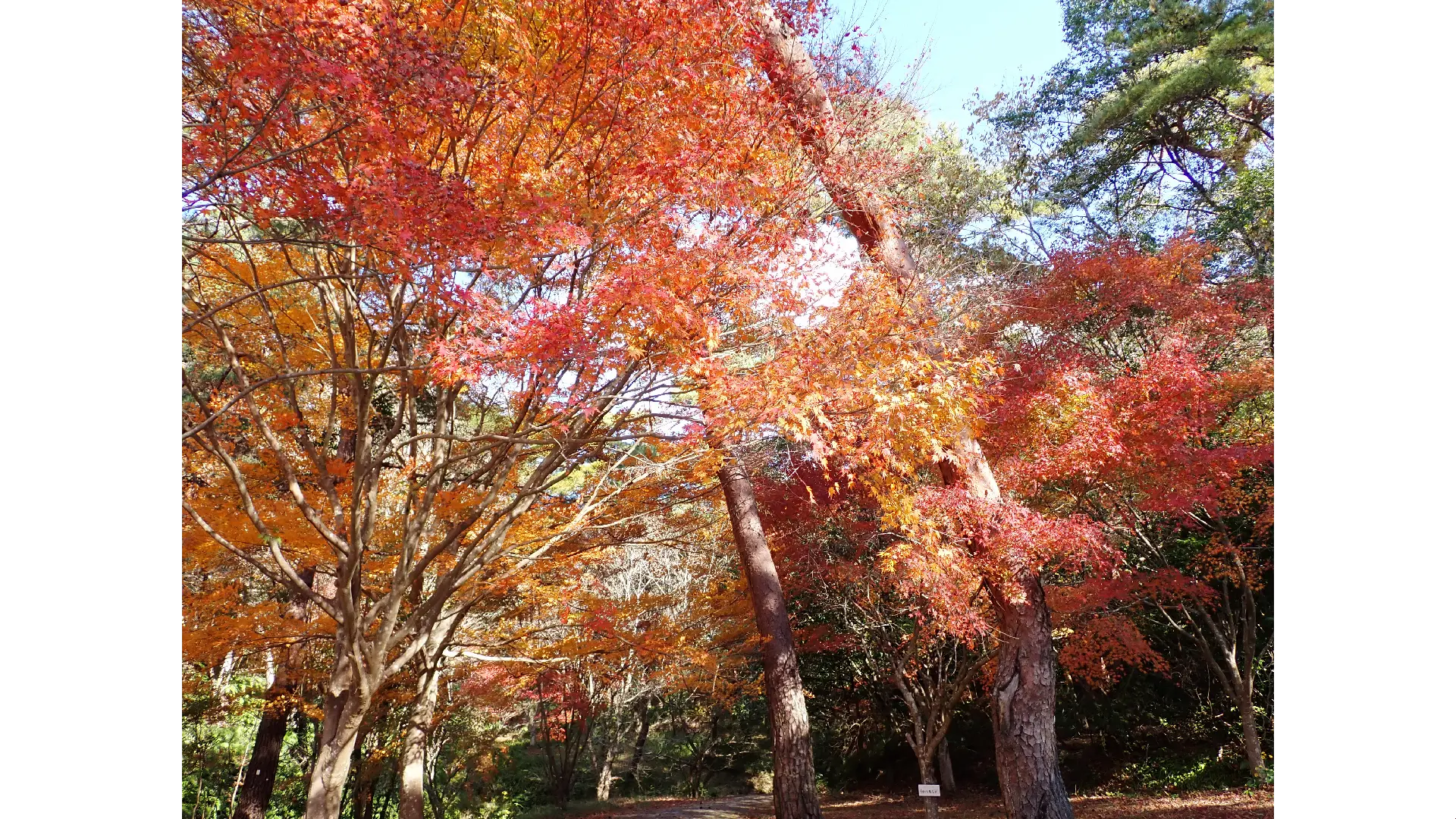 例年、モミジバフウが10月下旬頃に見頃、イロハカエデは11月下旬~12月初旬に見頃を迎えます。自然公園のため、ヤマウルシやコナラなど野辺の草木とともに、森全体が黄色~オレンジ~赤色など、自然な色味と風合いが楽しめます。決して派手ではありませんが、昔懐かしいほっこりした里山の秋を感じていただけます。公園面積が185haと広いため、ゆっくり散策できます。