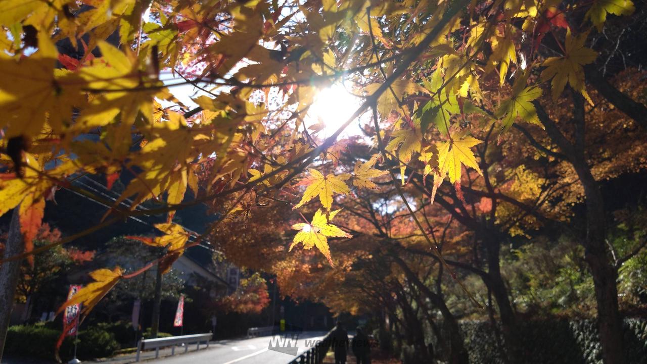 渓谷沿いにカエデ、ウルシ、ハゼ、その他の紅(黄)葉が、渓流とマッチし、濃い針葉樹林を背景にして美しい景観となっています。