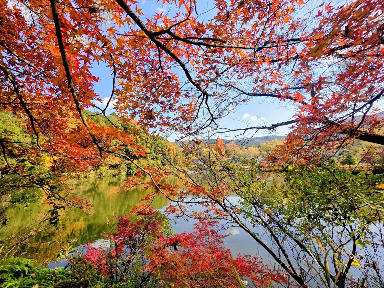 定光寺は1336年創建の臨済宗の寺院。初代尾張藩主、徳川羲直公の廟所と本堂は国の文化財に指定されています。本堂付近や境内の各所で鮮やかな紅葉が見られ、壮厳な建物とのコントラストが見事です。近隣の定光寺公園と併せて、紅葉を楽しみながら秋の散策を楽しめます。