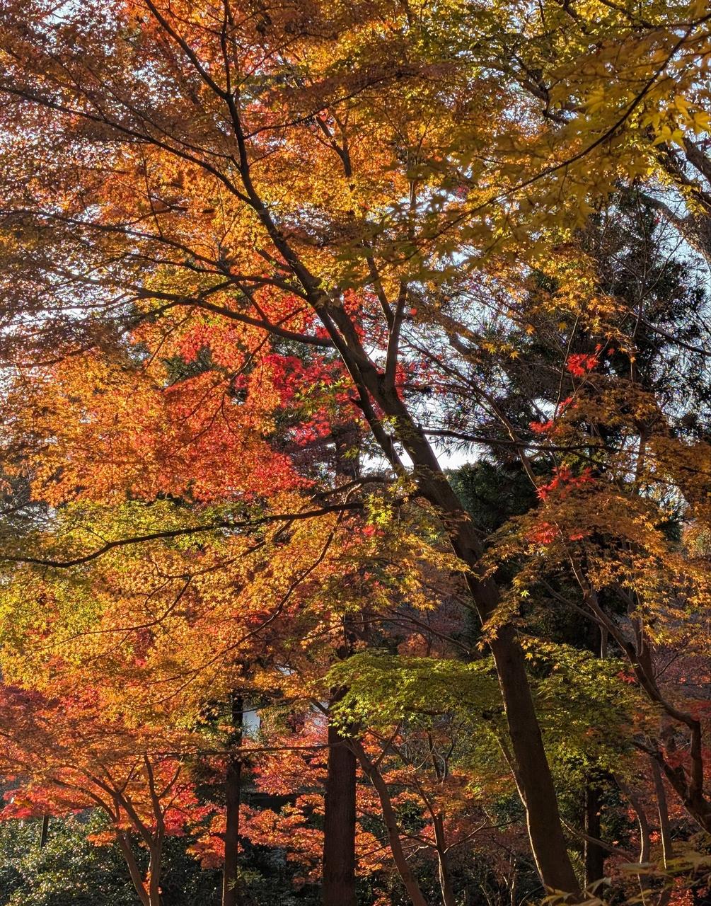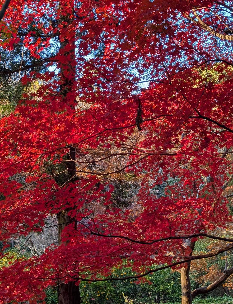 東山動植物園ではイロハモミジをはじめ様々な樹木の紅葉が楽しめます。イロハモミジ、オオモミジ、ハウチワカエデなどカエデの仲間や紅葉する樹木が、「也有園」「合掌造りの家」「日本庭園」周辺や園路沿いに多くあり、名古屋随一のもみじの名所といわれています。