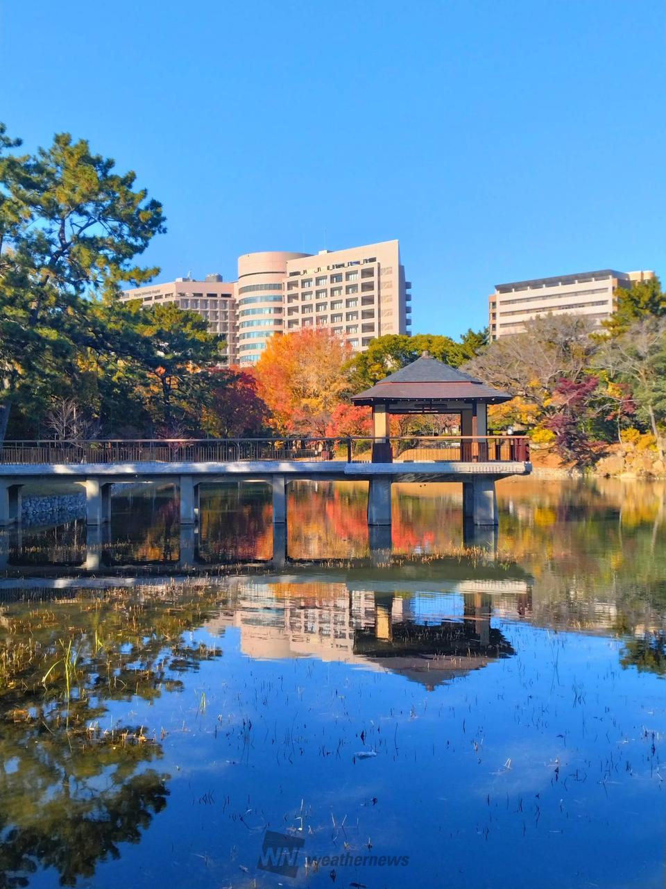 「秋の池」では名前の通り、モミジやハゼノキなど、秋の紅葉を楽しんでいただける樹木が多く植えられています。新しくなった四阿(あずまや)からの景色もお楽しみください。「胡蝶ヶ池」のモミジをはじめ、園内各所に紅葉を楽しめるスポットがあります。ぜひ秋の公園散策をお楽しみください。