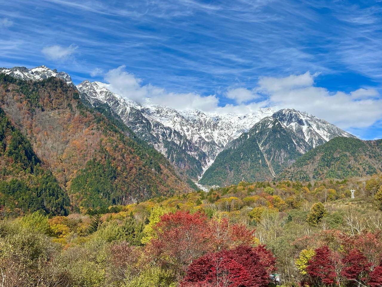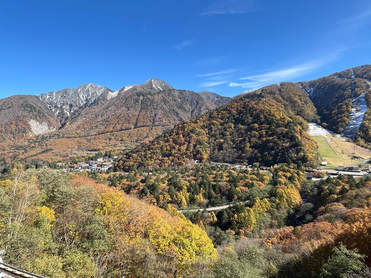 標高差がある奥飛騨温泉郷は10月上旬から始まり、10月下旬まで紅葉が楽しめます。10/20過ぎ頃、真っ青な空に新雪のかぶった北アルプスと紅葉のすばらしい景色を見ることもできます。10/上旬~11/上旬は福地温泉一帯で、10/中旬~11/中旬は新穂高温泉中尾高原で紅葉のライトアップをします。