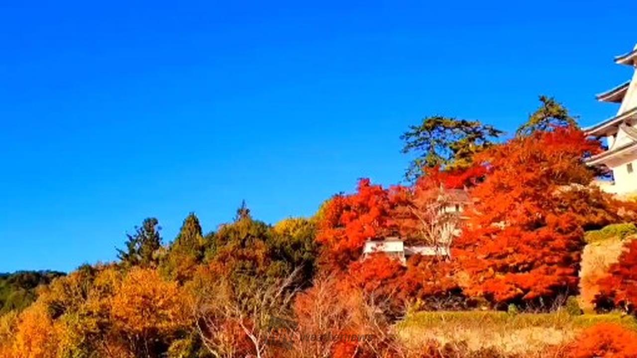天守閣を包むように染まる紅葉は「天守炎上」とも形容される美しさ!圧巻です。