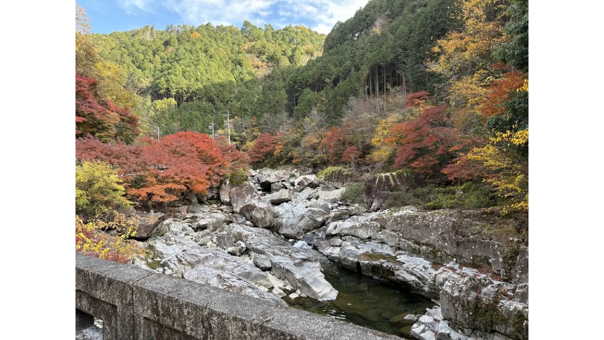 国道256号線沿いの佐見川には約6kmにわたる「佐見川峡」と呼ばれる小さな渓谷があり、秋には美しい紅葉を楽しませてくれます。