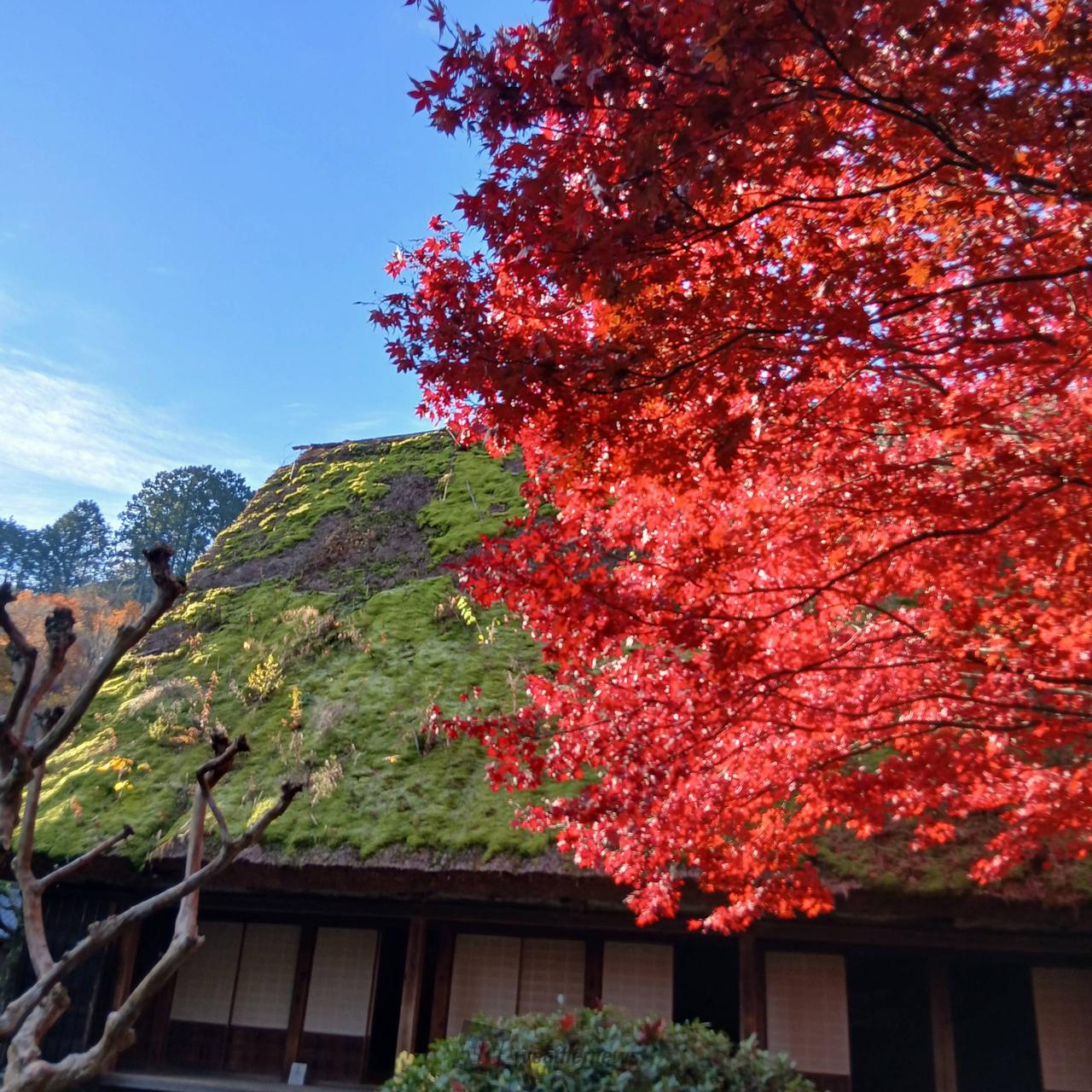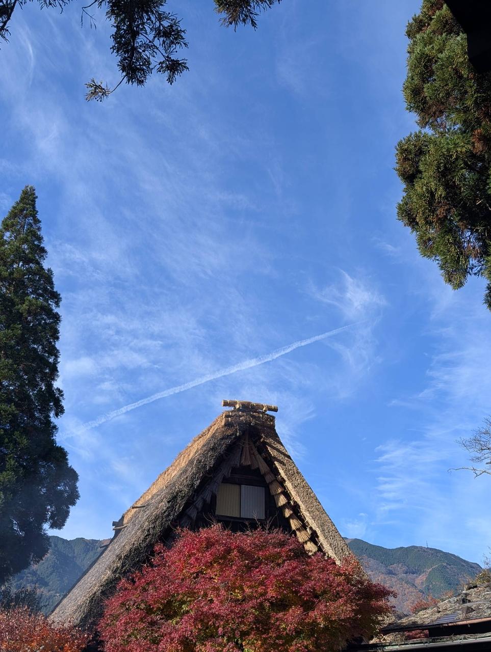 合掌作りの集落がカエデやケヤキなどの紅葉に染まります。懐かしい日本の秋の風景が広がります。