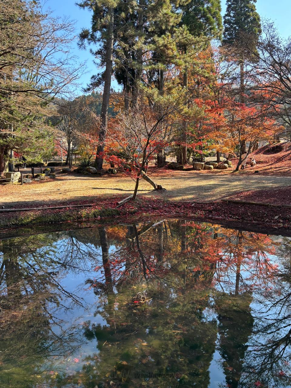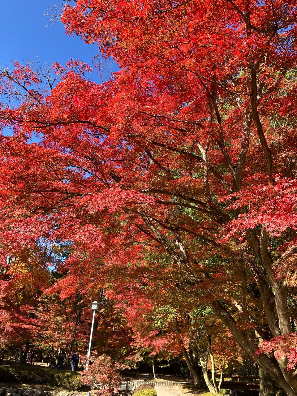 約300本のモミジやカエデ、イチョウなどが鮮やかに色づき、池に映り込む樹木とともに幻想的な景観を生み出します。自然と調和した美しさの中で、ゆっくりと散策しながら秋の彩りを満喫できます。