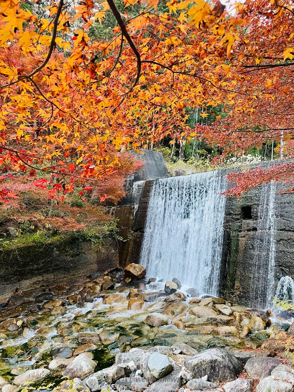 竜神の滝と色とりどりの紅葉もみじ橋と清流川上川1万5千本以上のもみじの紅葉竜神の滝ともみじのライトアップ