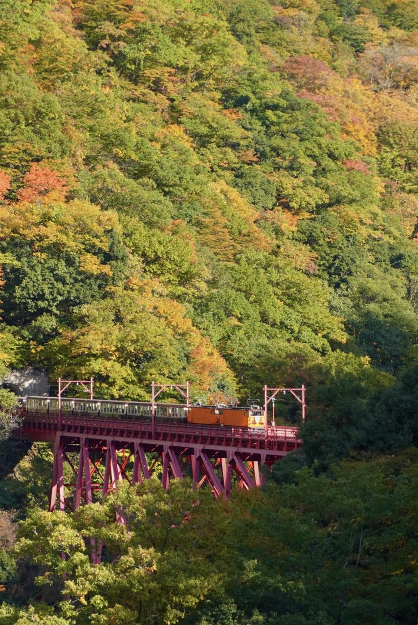 黒部峡谷トロッコ電車から見る峡谷の紅葉は見事です。紅葉に染まる紅葉樹や黄葉樹と、常緑樹との鮮やかなコントラストが特徴で、時期によっては(11月上旬)雪景色と紅葉を同時に見ることができます。季節によって見せる風景が変わる黒部峡谷の紅葉をぜひお楽しみください。また、2025年は宇奈月駅〜猫又駅(途中駅)での折返し運行を行っております。猫又駅は、通常工事関係者専用の駅のため、普段降りられない駅で黒部峡谷の眺望をご堪能ください。