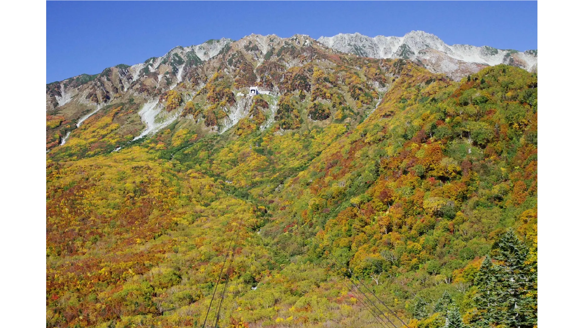 タンボ平の木々が織りなす錦のじゅうたんは圧巻です。眼下に黒部湖を望むこともできます。ロープウェイに乗って空中散歩も楽しめます。また大観峰駅屋上展望台「雲上テラス」でゆったりくつろぎながらの眺めもおすすめです。