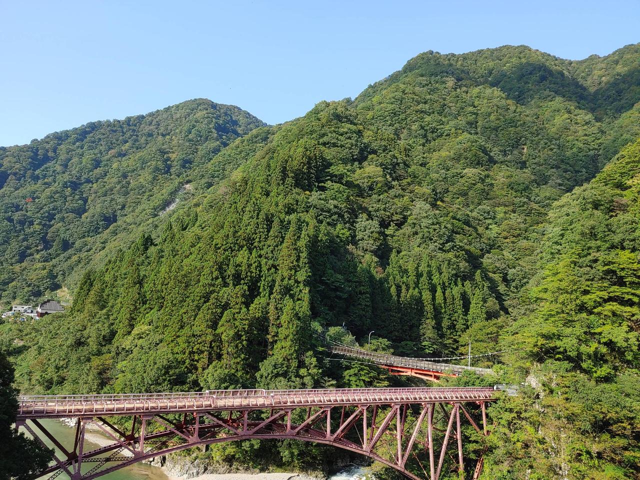 黒部峡谷にたたずむ宇奈月温泉街からは峡谷の紅葉を間近に楽しむことができます。温泉街全体を見渡すことができる大原台自然公園や、ダム湖と紅葉のコントラストを楽しめる宇奈月ダム周辺は絶好の紅葉スポットです。