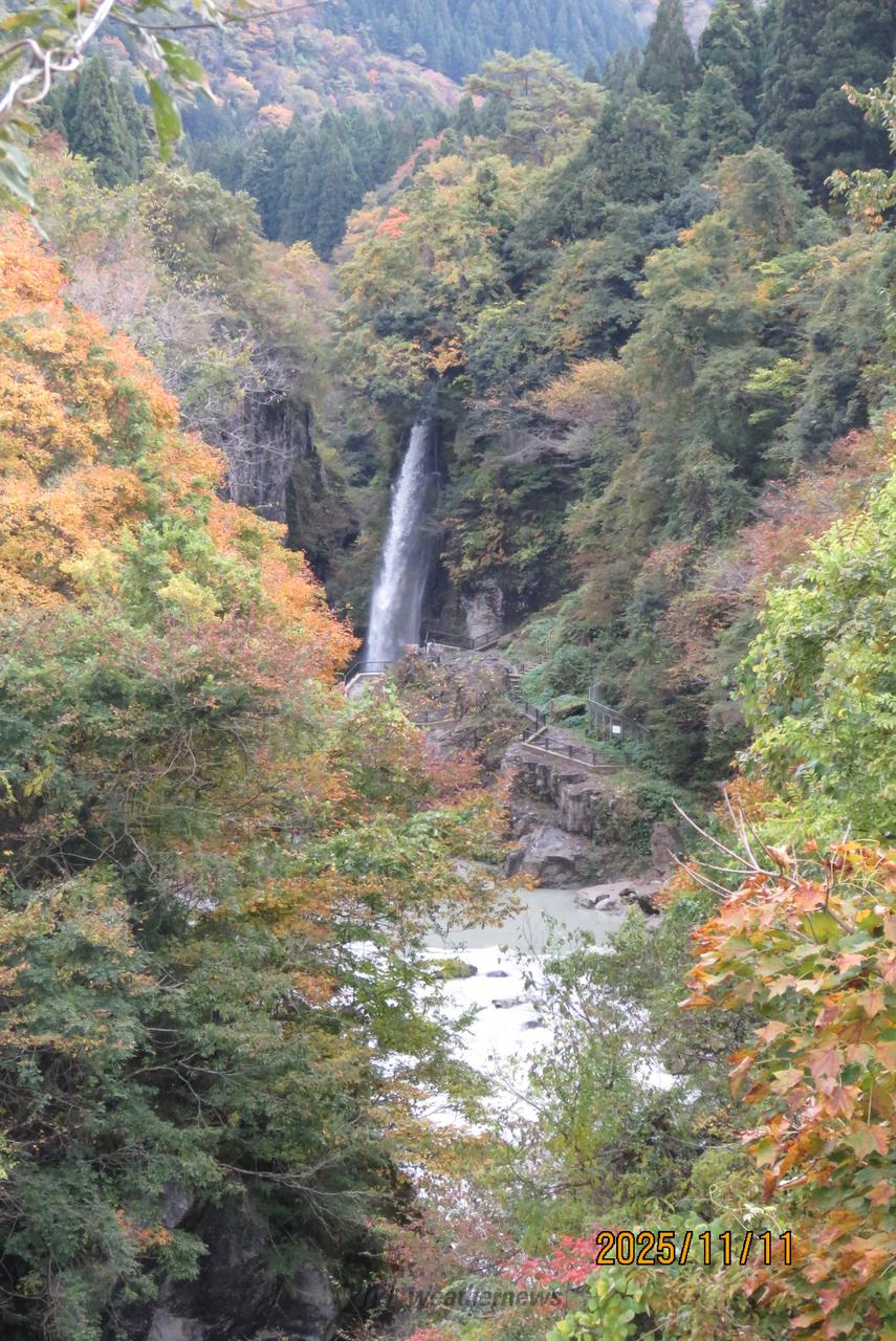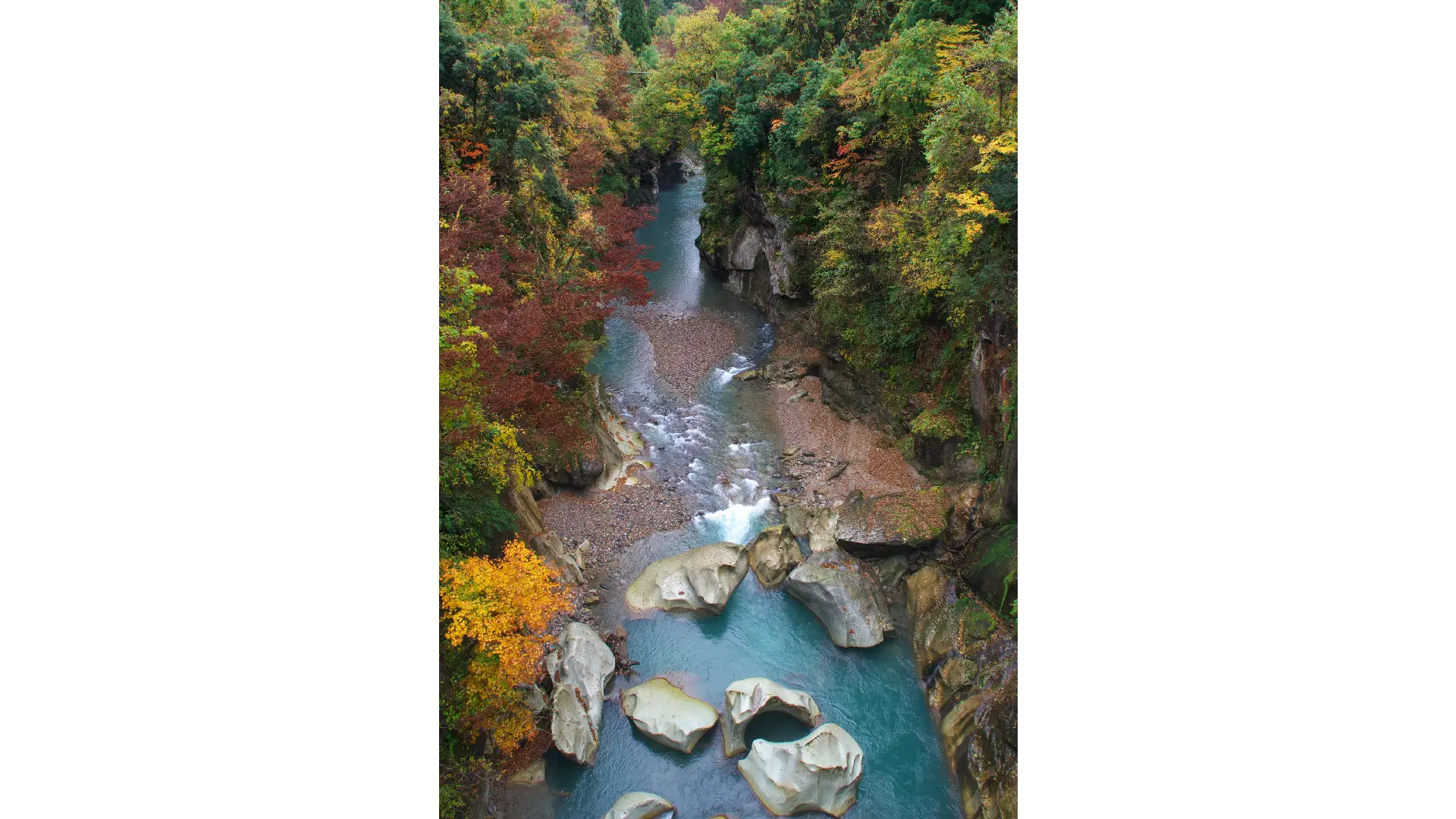 手取川は白山を源流とする石川県最大の河川で、その中流約8kmにわたり高さ20m〜30mの峡谷が続いており、秋には紅葉を楽しむことができます。紅葉の赤、澄んだ水の青と色彩豊かな光景をお楽しみ下さい。また綿ケ滝いこいの森駐車場から階段を下りると、綿ケ滝を間近で見ることができます。32mの高さから流れ落ちる水流は迫力満点です。
