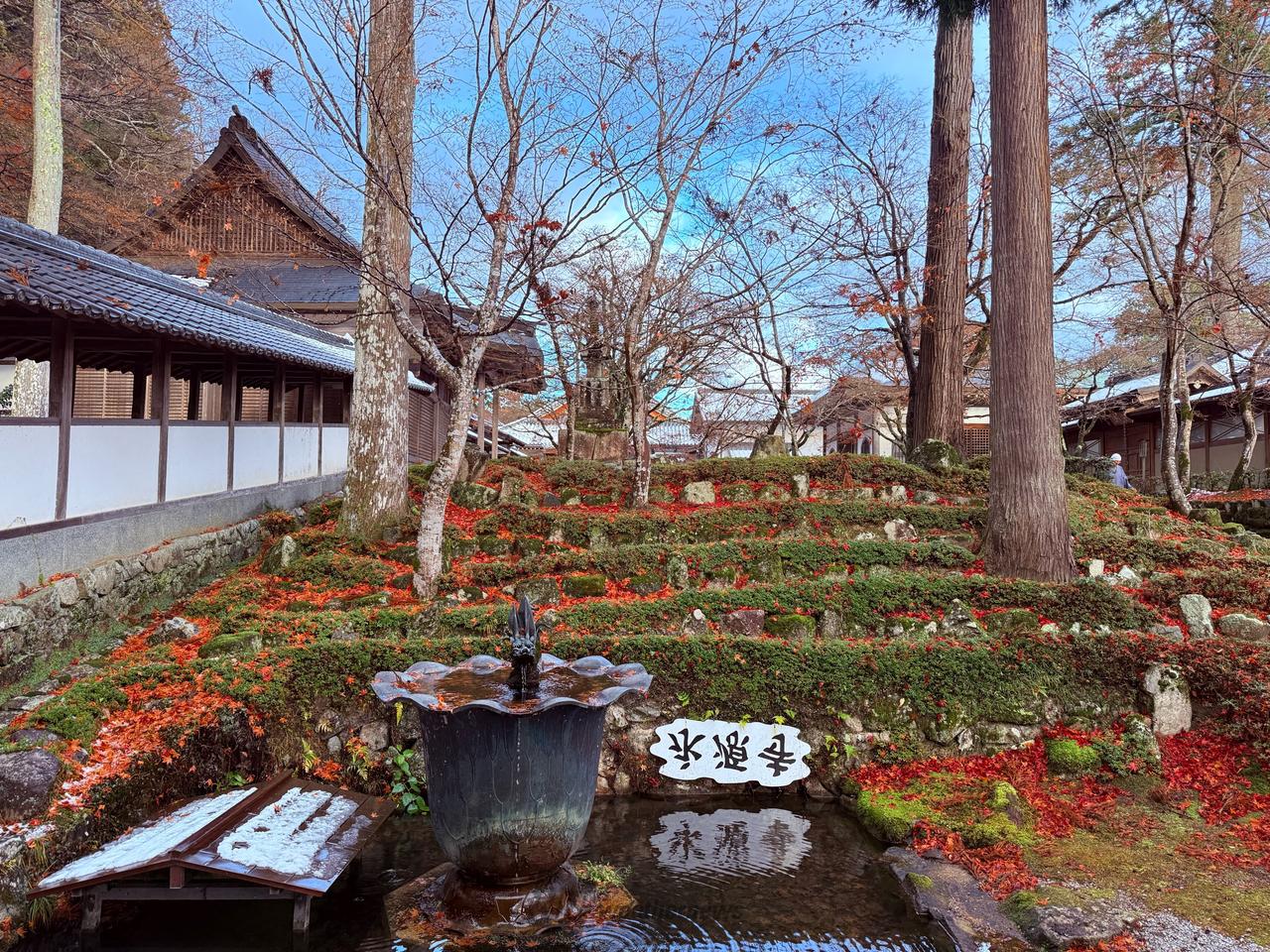 大自然の恵みと人々の英知に支えられて近江湖東の地に悠久の時を刻んできた仏統と格式の古刹。南北朝時代、時の近江領主佐々木家により創建され、戦国期の戦乱により荒廃しましたが、江戸期の井伊家庇護のもと伽藍が整えられました。古くからご本尊「世継観音」詣でが盛んで参詣道が発展し、近江随一の紅葉名所としてたくさんのご参拝を頂いております。もみじ狩りの見どころとしては、境内の奥、開山堂前の「開山お手植え」もみじは、早くから色づきます。表参道は、愛知川を眼下に階段を上がって総門や山門へ至り、その道中は紅葉トンネルと称されるように美しい景色が続きます。境内全域にわたり紅葉の自然美と諸堂の建築美が織り成すコントラストが鮮やかです。また、木々それぞれ色づき具合がさまざまで秋から冬にかけて移り変わる様子も魅力です。裏参道には「黄金のカエデ」、永源寺ダムや鈴鹿の山並みも楽しめます。