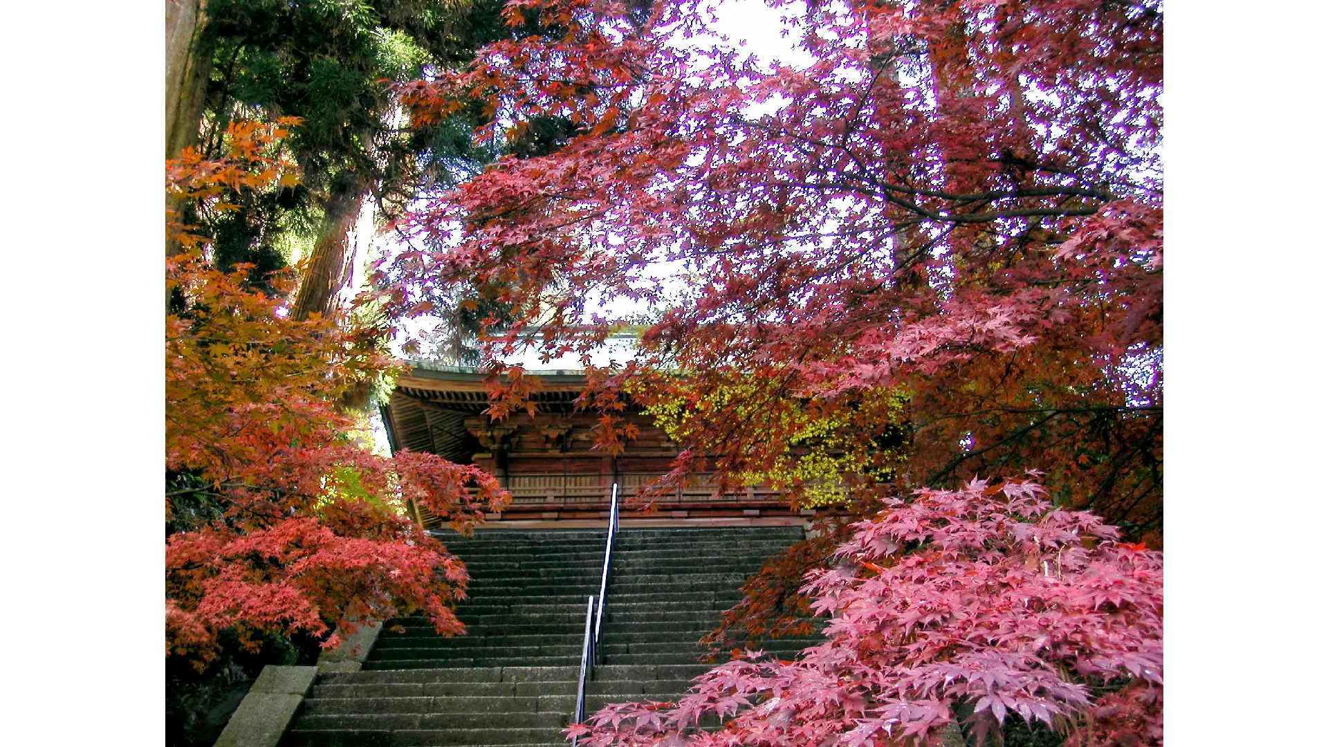 百済寺は金剛輪寺、西明寺とともに湖東三山と呼ばれています。近江最古級の古刹で、推古14年(606)に聖徳太子の御願により百済人のために創建されました。室町時代の最盛期には1000余りの坊舎を有する巨大寺院となりましたが、織田信長の焼き討ちなどでほとんどの建物が焼失しました。あの辛口の宣教師ルイス=フロイスが「地上の天国一千坊」と絶賛した光景は石垣参道から偲べます。本堂、仁王門、山門などが江戸時代に再建されました。現在もなお、百済寺の光景は五木寛之著「百寺巡礼」第35番のお寺として詳しく紹介され、また、白洲信哉氏「古都逍遥」で庭園美を絶賛されています。庭園の池に映る紅葉や古びた石垣沿いの紅葉など楽しむことができます。先年、「国史跡」に指定された83haの広大な境内地に自生する5000本以上の落葉樹群は四季を通じて「百彩の美」を放っております。※特別拝観:本尊脇侍の如意輪観音と極彩色の聖徳太子像を12/31まで公開追加料金なし。