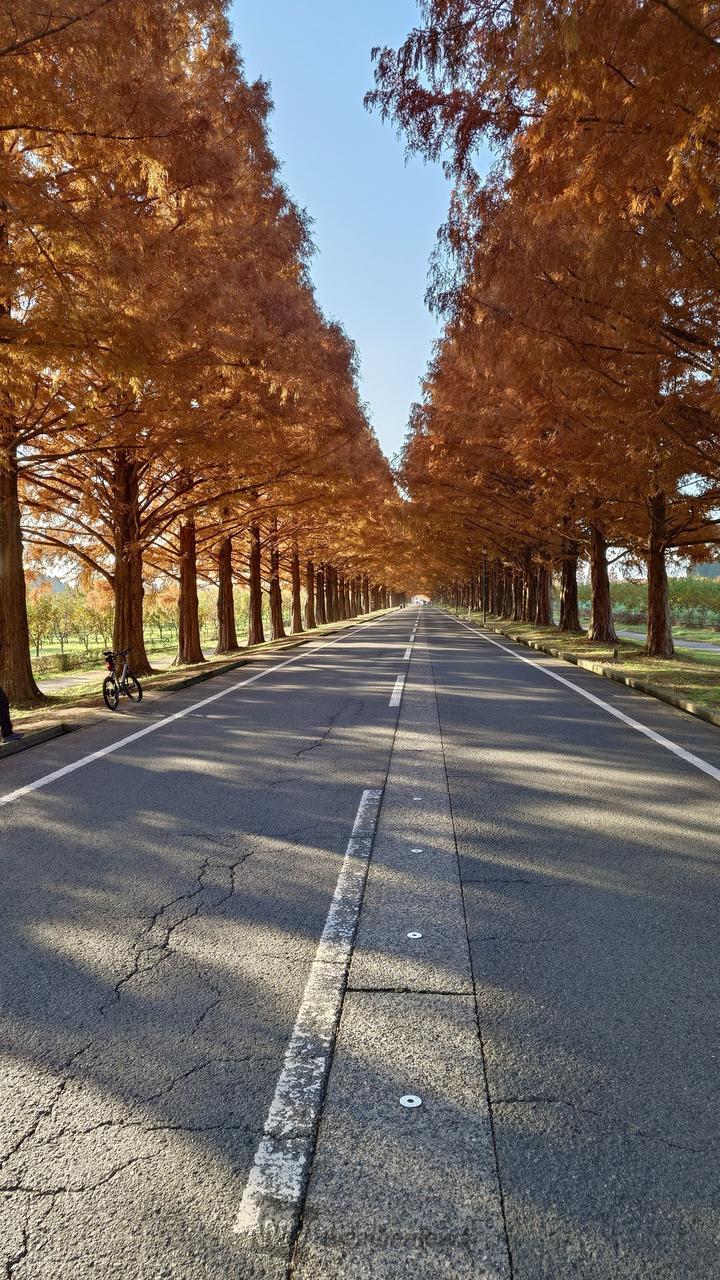 マキノ高原側の並木、マキノピックランド前から向かって伸びる直線道路 ※道の真ん中での撮影は絶対におやめください。