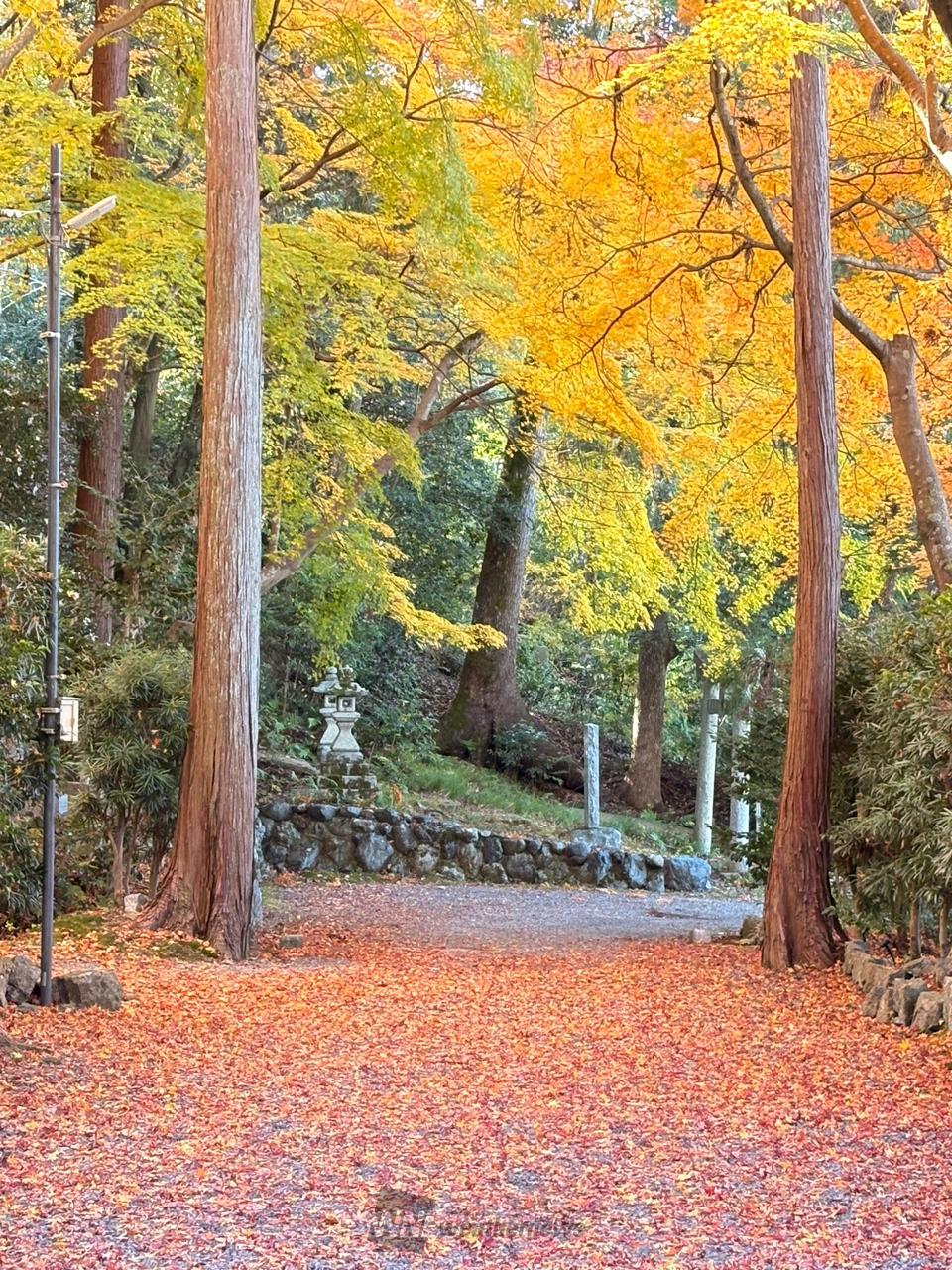 11月下旬には国指定名勝庭園の借景である紅葉が色づきピークをむかます。12月上旬から中旬にかけては参道の紅葉が落葉するのでそこも見どころの1つです。