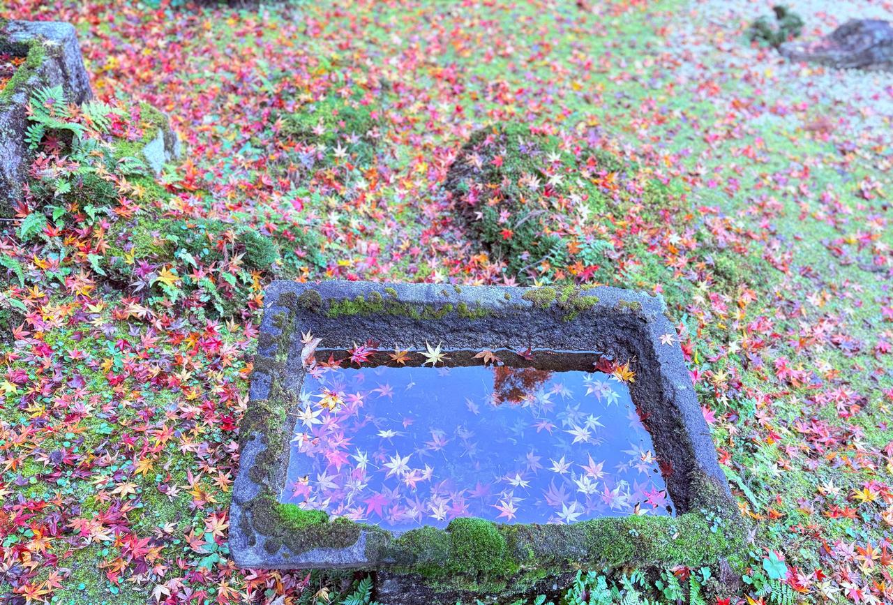 青岸寺参道紅葉の絨毯、青岸寺庭園、リフレクション写真