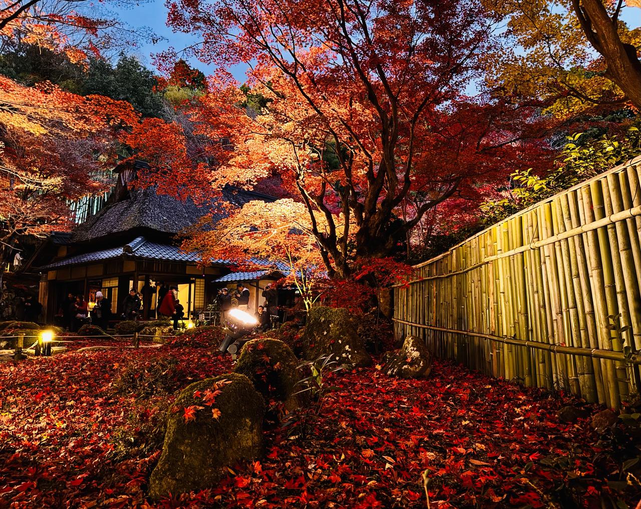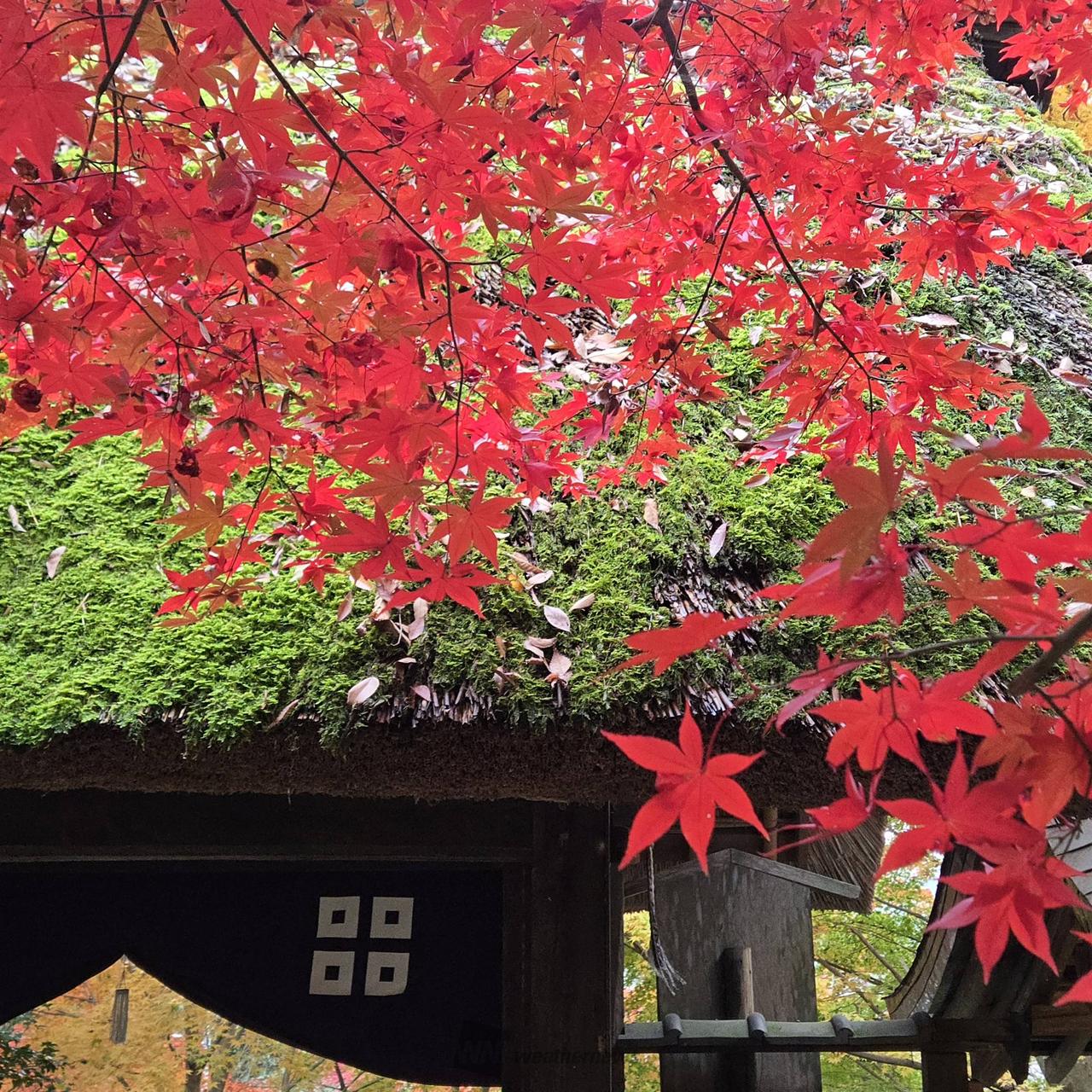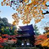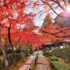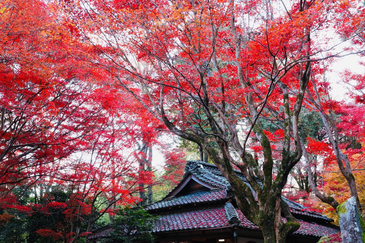 3000坪の境内に約300本のモミジ。小堀遠州作の名勝庭園と数千本の竹林と紅葉のコントラスト、池に映るモミジが見所です。