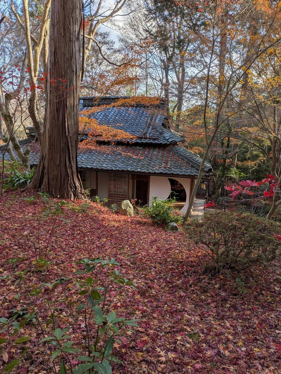 3000坪の境内に約300本のモミジ。小堀遠州作の名勝庭園と数千本の竹林と紅葉のコントラスト、池に映るモミジが見所です。