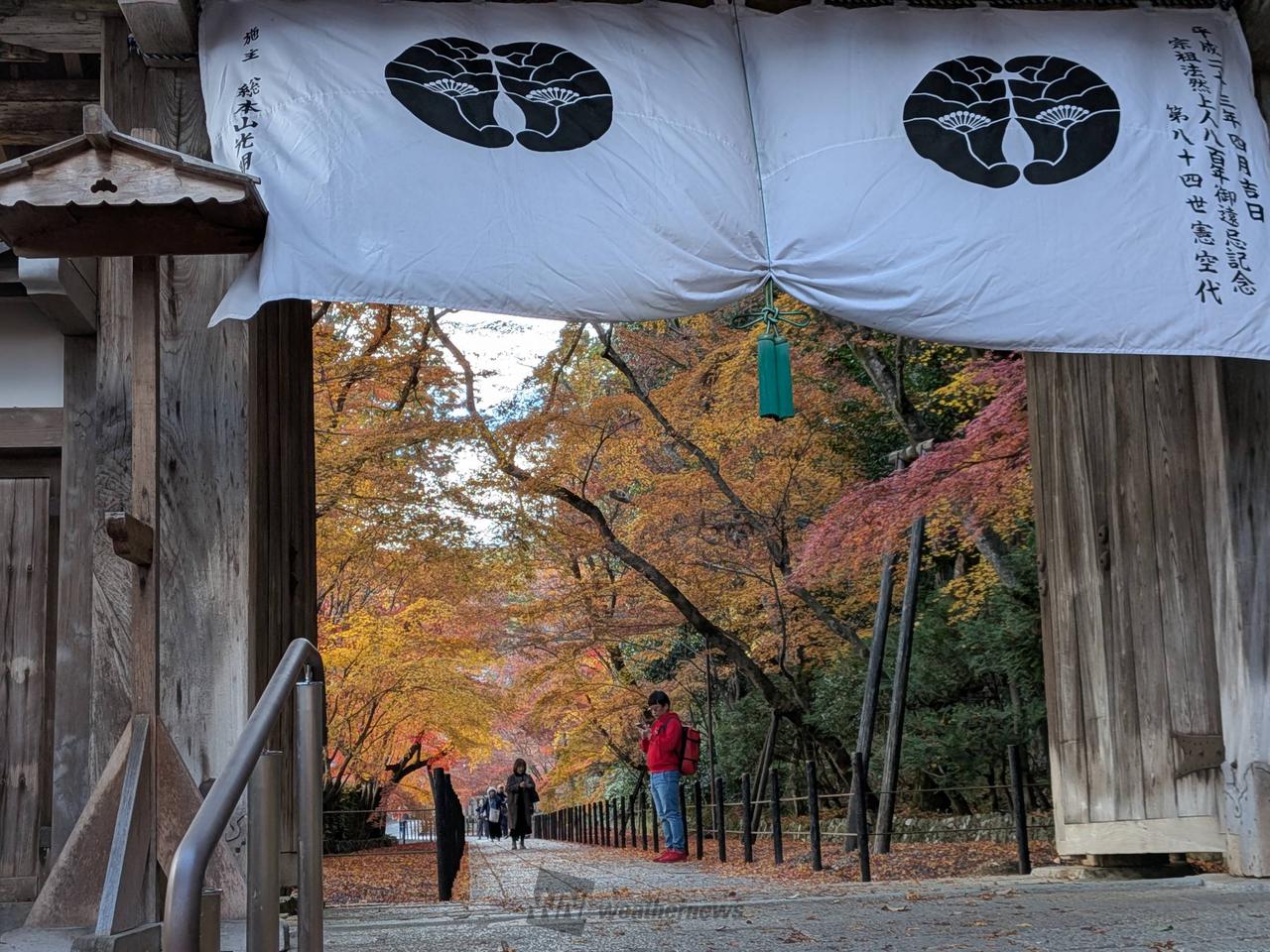 「薬医門」もみじ参道の中腹に位置し、紅葉の時期に多くの方が写真を撮られる場所となっています。延宝4(1676)年に建立されました。