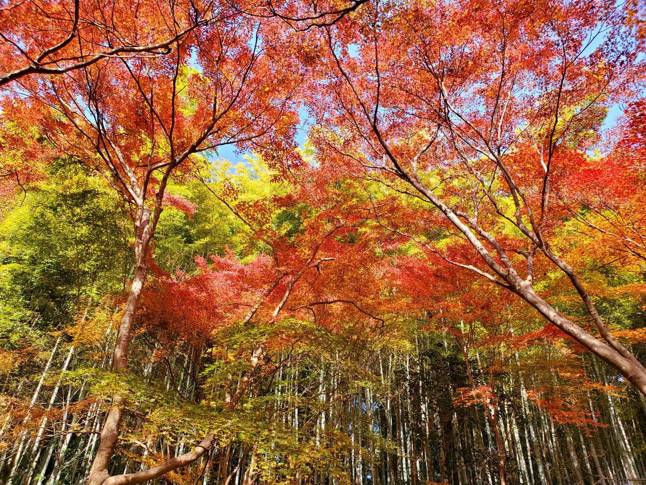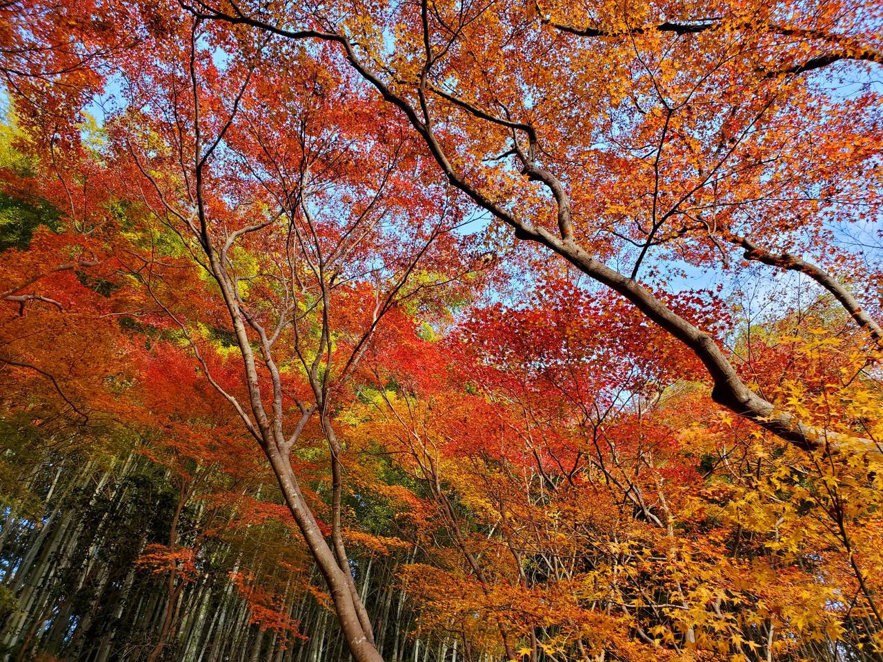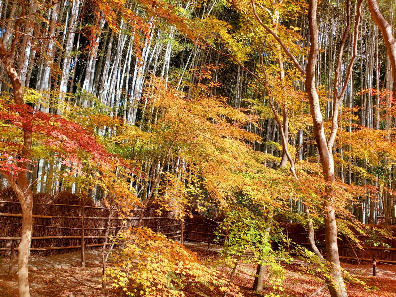 11月下旬から12月中旬にかけて、境内の苔庭にモミジが舞い散り「散り紅葉」の景色が出来ていく。緑の苔と紅葉とのコントラストが美しい。