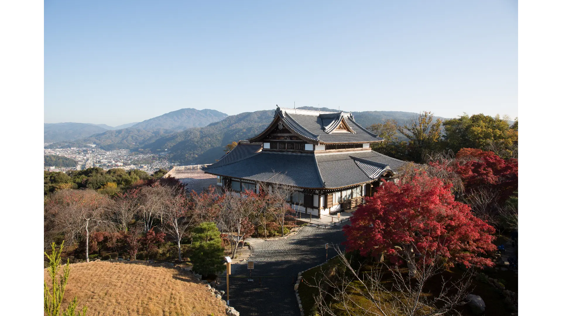 境内に植えられた200本強の紅葉と、京都市内が一望できます。境内には、桓武天皇が平安京遷都の折りに京都の地形を確認したと伝えられる将軍塚がございます。