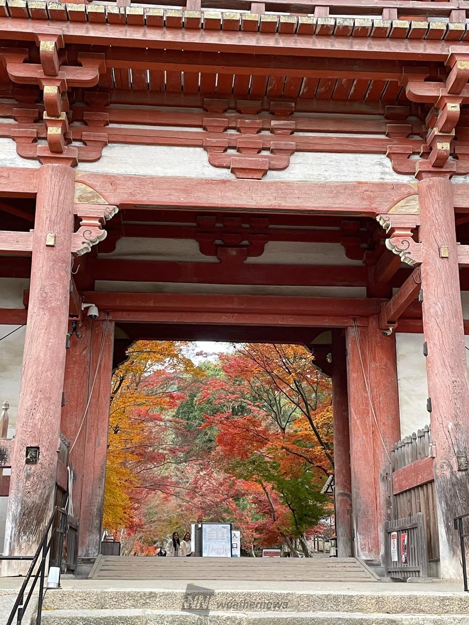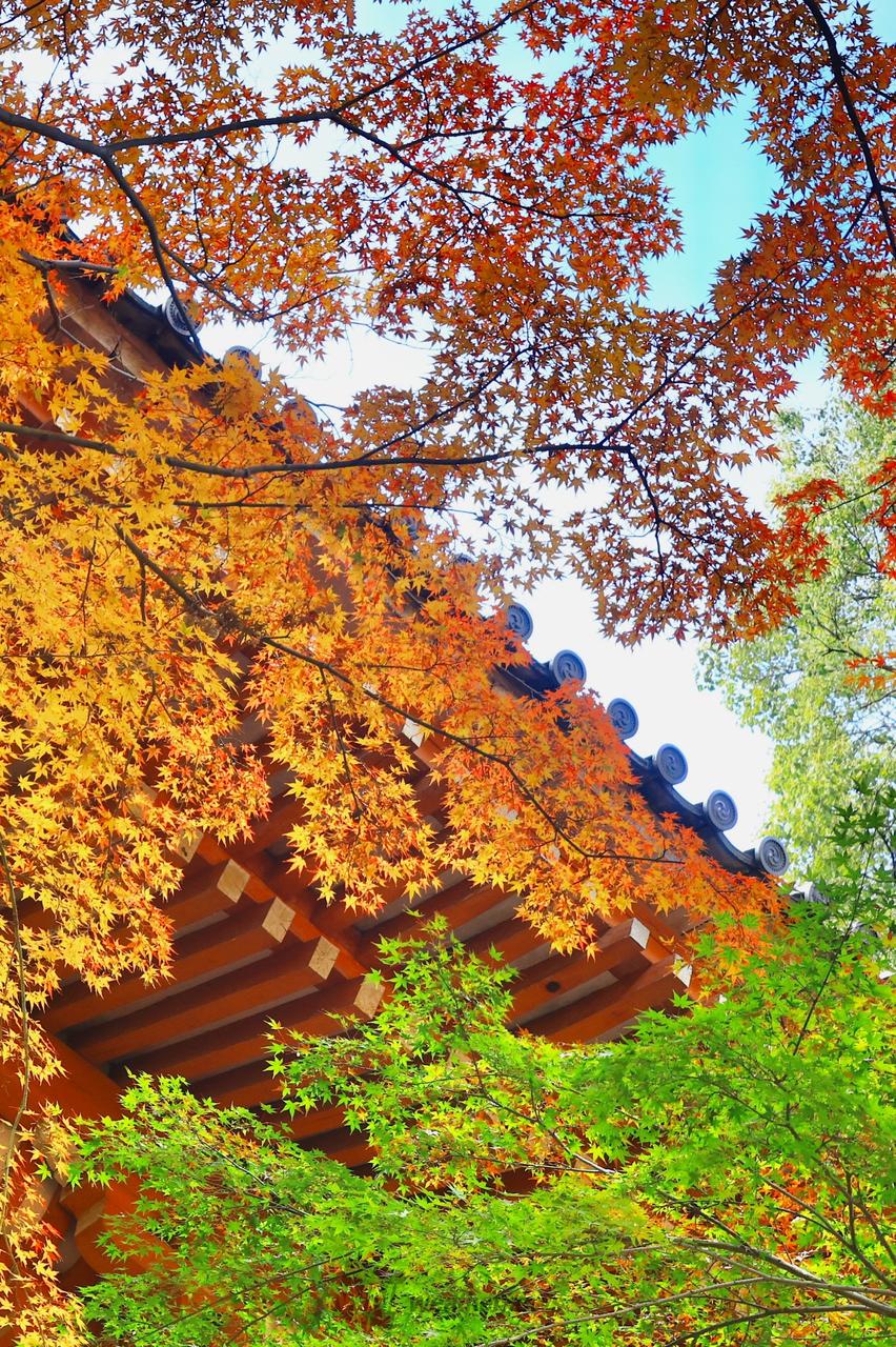 醍醐寺は、空海の孫弟子・聖宝により874年に開創された寺院で、醍醐山一帯に自然豊かな境内が広がります。伝承文化財は10万点以上で、世界遺産にも登録されました。弁天堂が立つ池の周り一帯は最もあでやかな紅葉のスポットで、朱塗りのお堂や紅葉が鏡のように水面に映し出されます。夜間拝観では、伽藍の紅葉が照明によって錦のように浮かび上がり、幻想的な雰囲気に包まれます。