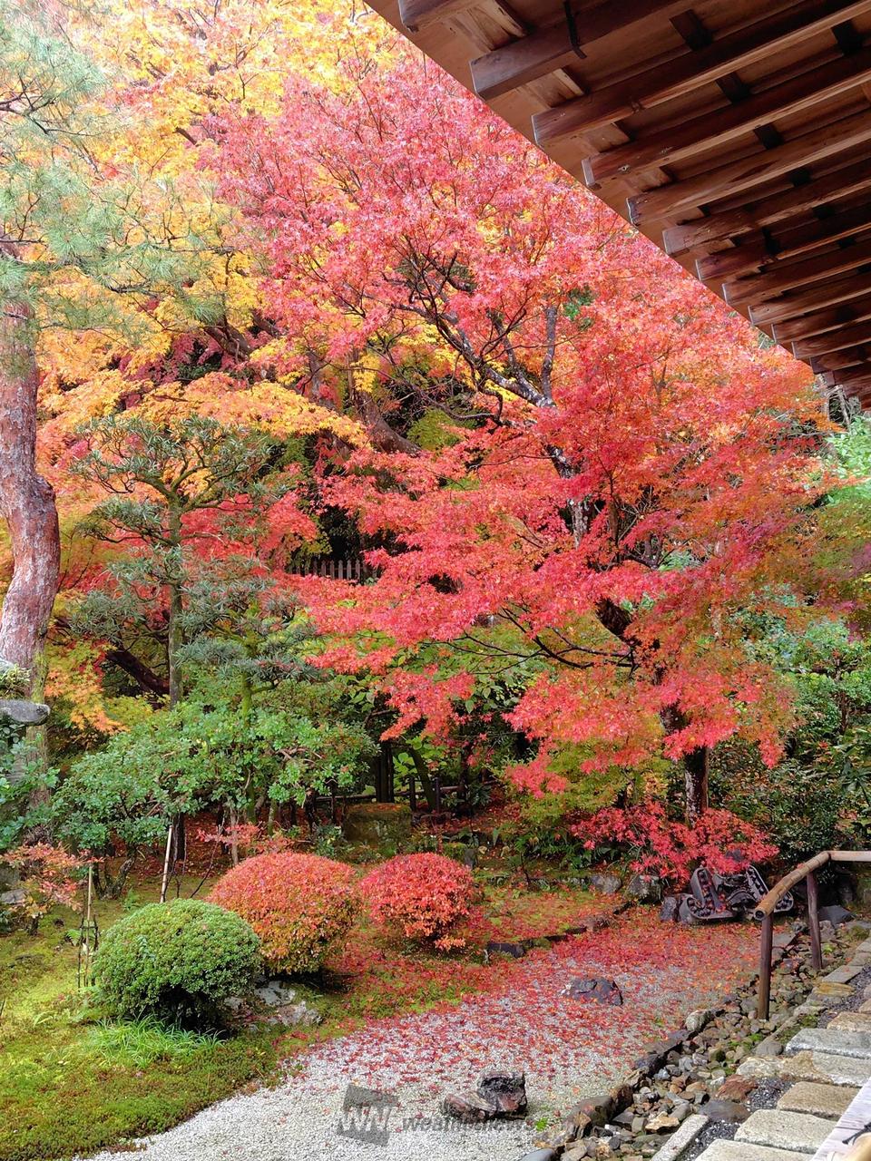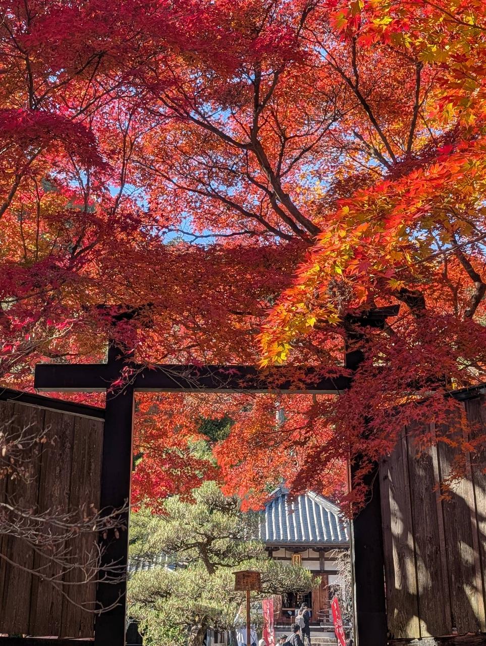 山門を入り、眼前に広がる「紅葉の馬場」という山道、勅使門の紅葉、小倉山のグラデーションの紅葉は圧巻