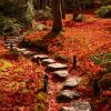 小倉山のふもとに広がる二尊院の境内は平安時代より紅葉の名所。小倉山のグラデーションの紅葉、参道の「モミジの馬場」の両端から、色づいた鮮やかな紅葉がせり出すように、枝を伸ばす景色は圧巻。真っ赤な紅葉に包まれる本堂と勅使門、そして晩秋の散紅葉と、紅葉名所にふさわしい美景がいっぱいで、参拝者の心を癒してくれます。