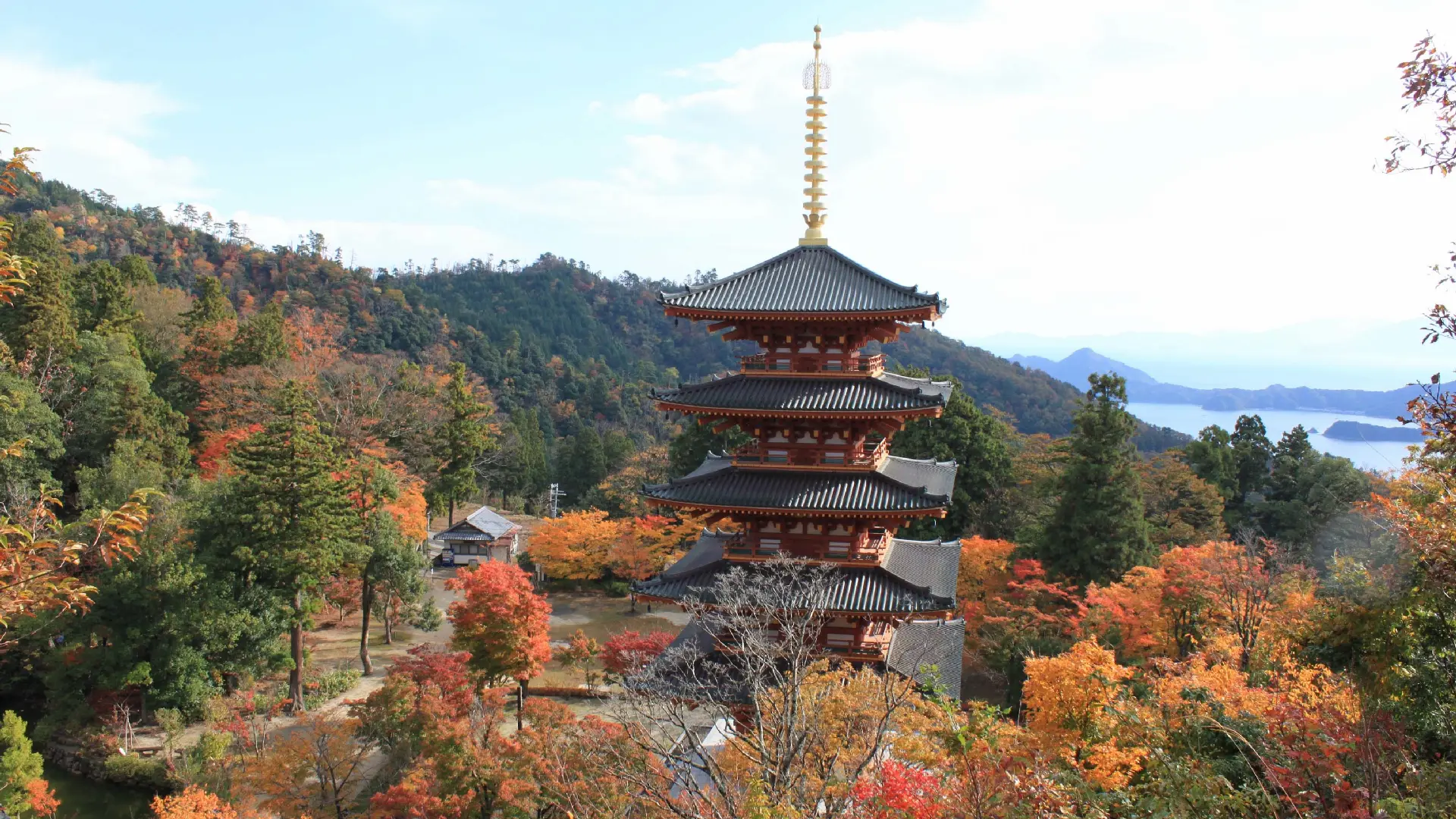 境内を散策しながら紅葉を楽しむことができます。なかでも五重塔周辺はオススメスポットです。