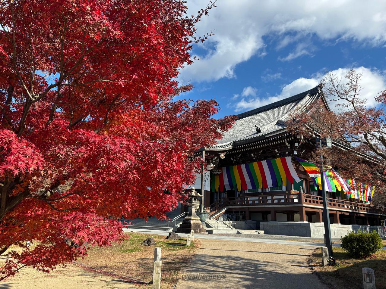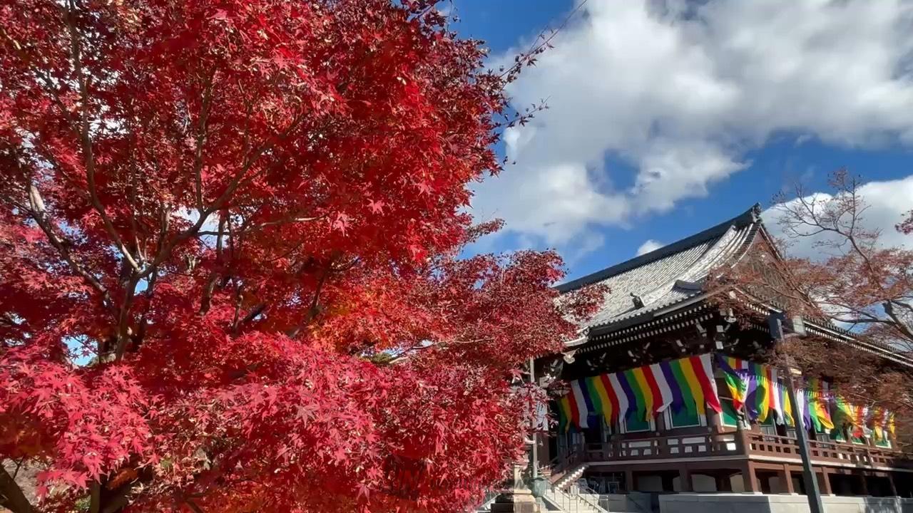 周辺にモミジの多い鐘楼堂を背景に撮影する方が多いです。