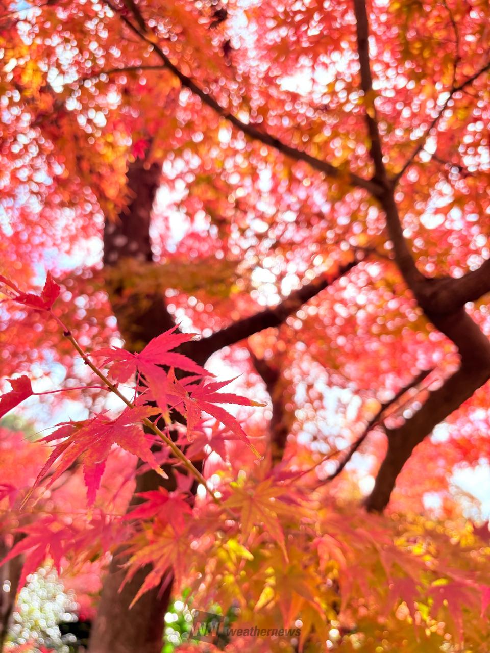 イロハモミジが多いですが、紅葉する樹木がさまざまあります。園内には温室もあり、紅葉以外も楽しめます。園内が紅葉できれいになっている11月下旬にライトアップを行うほかに、11月22日~24日には収穫祭を行います。