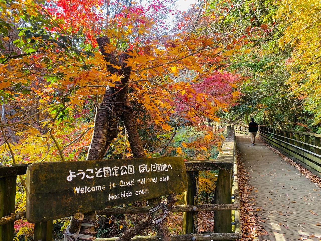 日本最大級の星のブランコ(つり橋)から眼下に広がる360度の紅葉は絶景で見応え十分です。