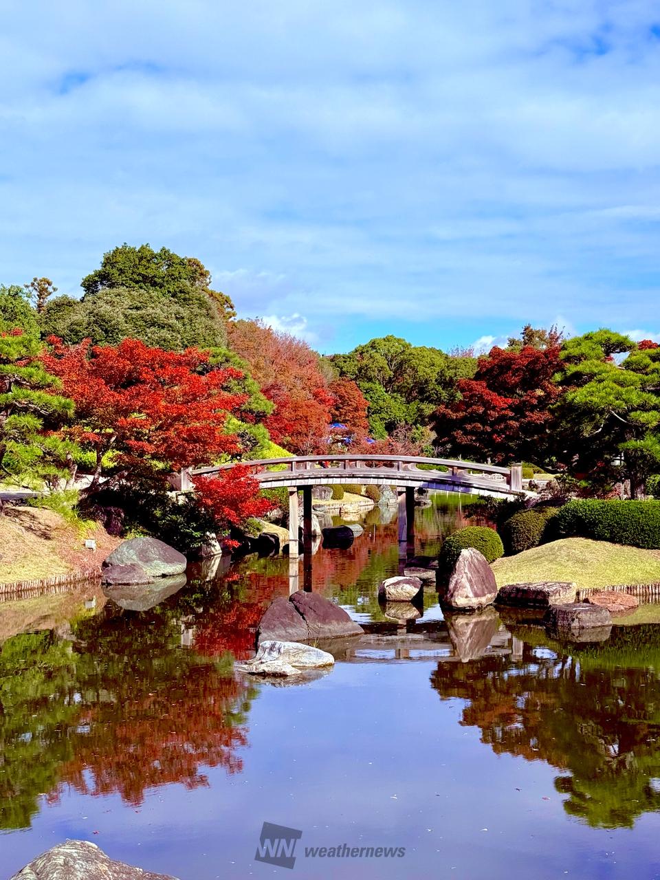 映波橋、印月橋、石津渓。風景と紅葉がマッチし見応えがあります。