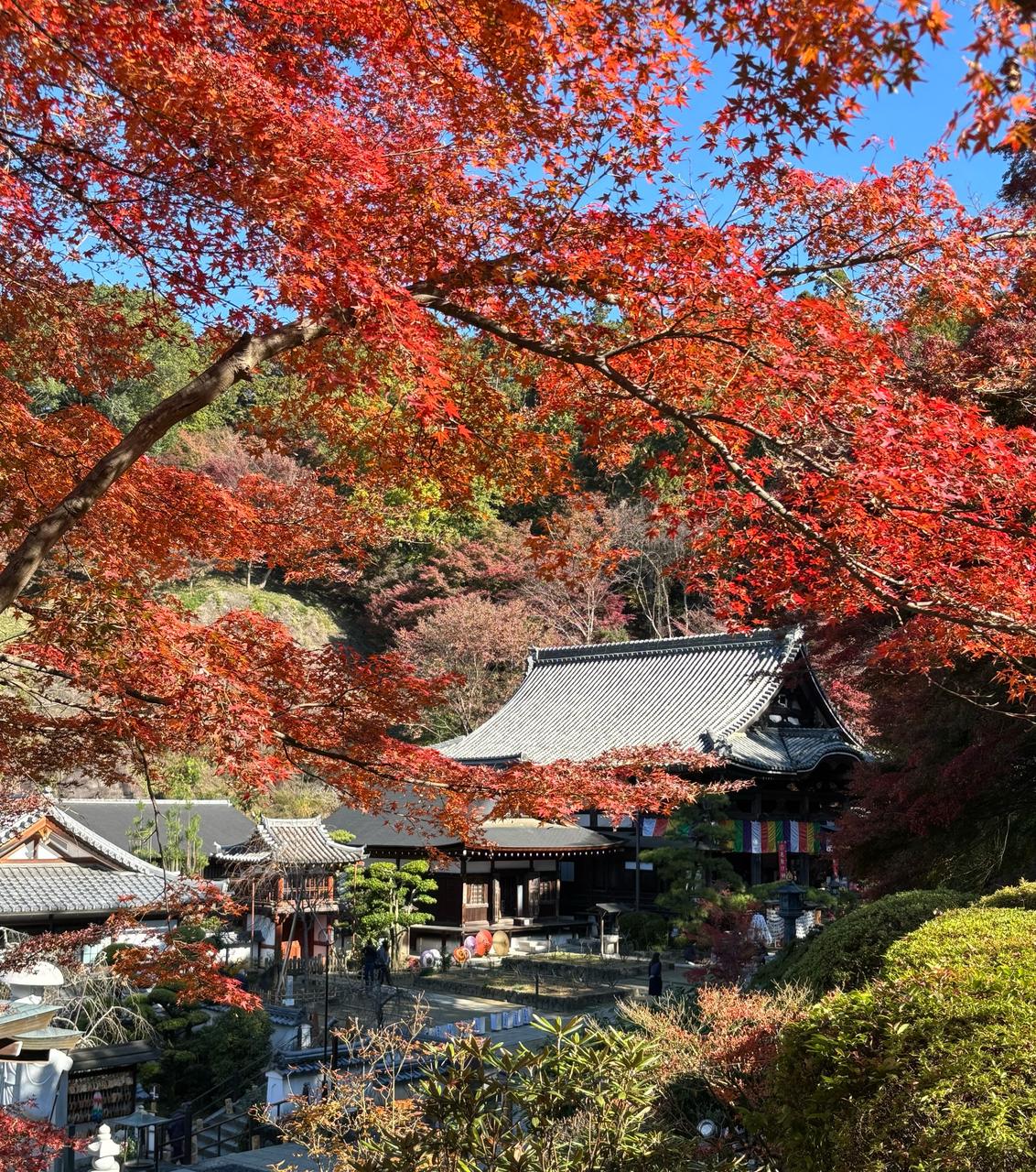 境内を囲むように紅葉があり、特に三重宝塔周辺から参道はさながら紅葉のトンネルのようになり、明日香村では数少ない紅葉の名所です。