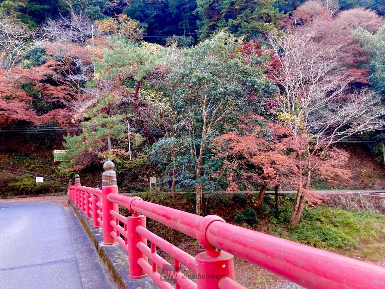 天神社・黒丸神社の社叢を中心とした小田川に沿う景勝地で、県指定の高梁川上流県立自然公園の一つです。小田川渓谷1kmに渡り、楓、樅等の巨樹・老木が清流に影を落とし、四季折々の変化を大人から子供まで年中楽しめます。春はもみじの若葉や山桜、夏は深い緑に覆われた渓谷での水遊びや魚釣りが楽しめます。秋は天神峡の本領であるもみじの素晴らしい紅葉を、冬は山水画のような雪景を見る事が出来ます。