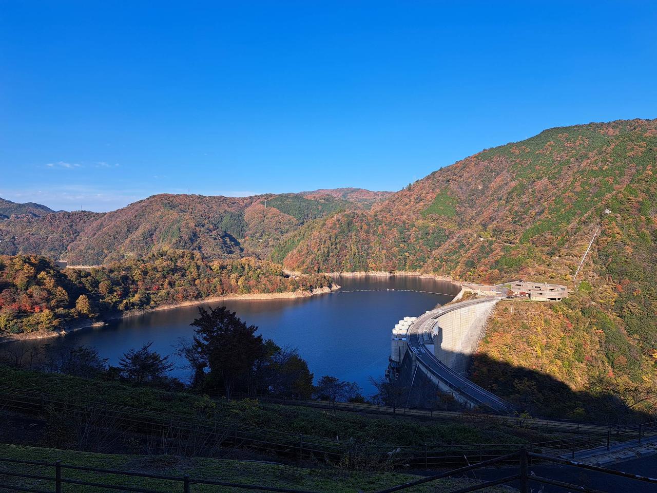 温井ダムは高さ156mの西日本最大のアーチ式コンクリートダムです。展望デッキや温井自然生態公園から眺めるダム湖越しの紅葉を楽しめます。温井ダムは一般開放されており、ダムに関する資料室やエレベーターで堤体内に入ることができます。
