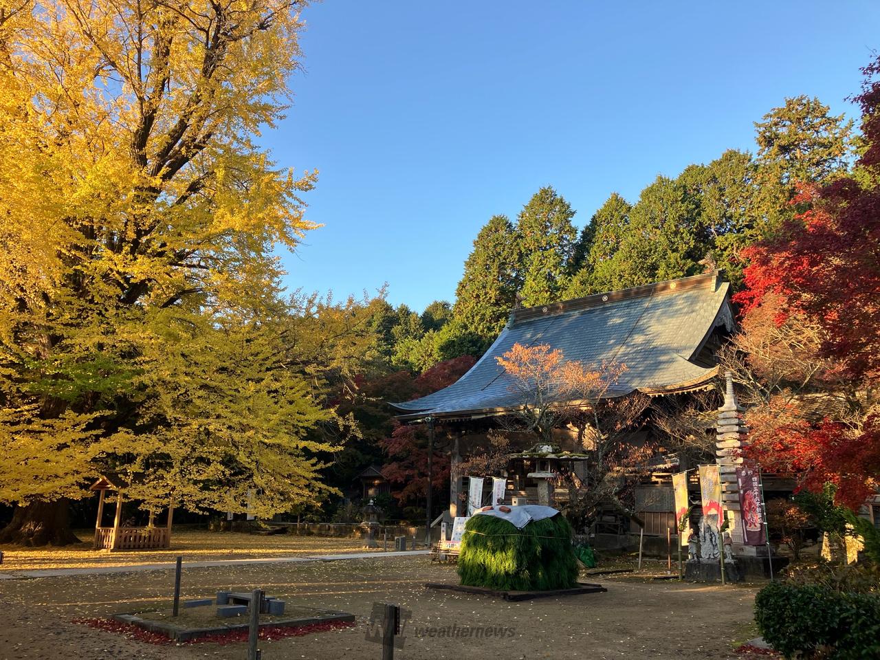 四国別格二十霊場第一番札所の大山寺は阿讃山脈の大山の中腹にあり、11月上旬から境内の銀杏やもみじが色づき中旬頃にピークとなります。