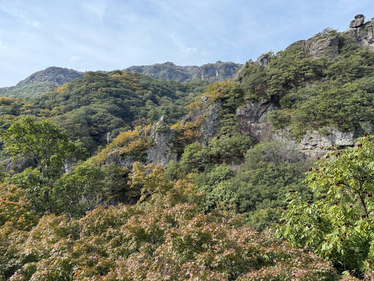 表12景、裏8景からなる自然が創り上げた岩山には50種類以上もの紅葉植物が季節の彩を添えます。日本三大渓谷美の1つとも称される海の見える渓谷です。秋が深まるにつれて切り立った岩山が紅く黄色く鮮やかに染まります。