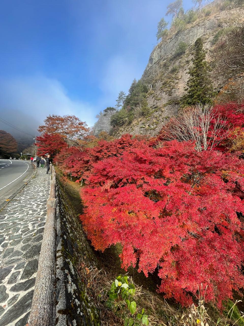 県道12号沿いにあり、訪れやすいことでも人気の名勝。60~100mにもなる奇岩群を紅葉として飾るという壮大なスケールで見る人をたのしませてくれる古岩屋は、国の指定名勝地としても知られています。岩肌には「イワマツ」や「セッコク」、「ウチョウラン」などの希少な植物が自生しており、岩肌に咲く草花を観察するなら、望遠鏡の持参がオススメです。