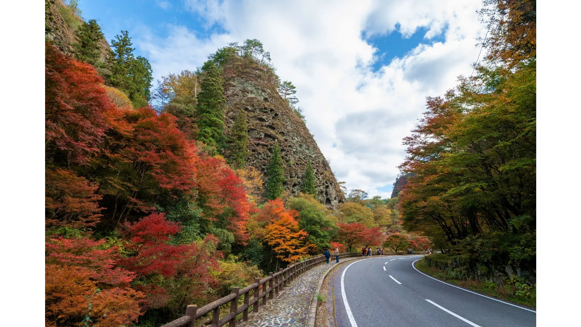 県道12号沿いにあり、訪れやすいことでも人気の名勝。60~100mにもなる奇岩群を紅葉として飾るという壮大なスケールで見る人をたのしませてくれる古岩屋は、国の指定名勝地としても知られています。岩肌には「イワマツ」や「セッコク」、「ウチョウラン」などの希少な植物が自生しており、岩肌に咲く草花を観察するなら、望遠鏡の持参がオススメです。