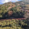 大荒の滝を目指して遊歩道を歩くと、色づいた山々に目を奪われます。