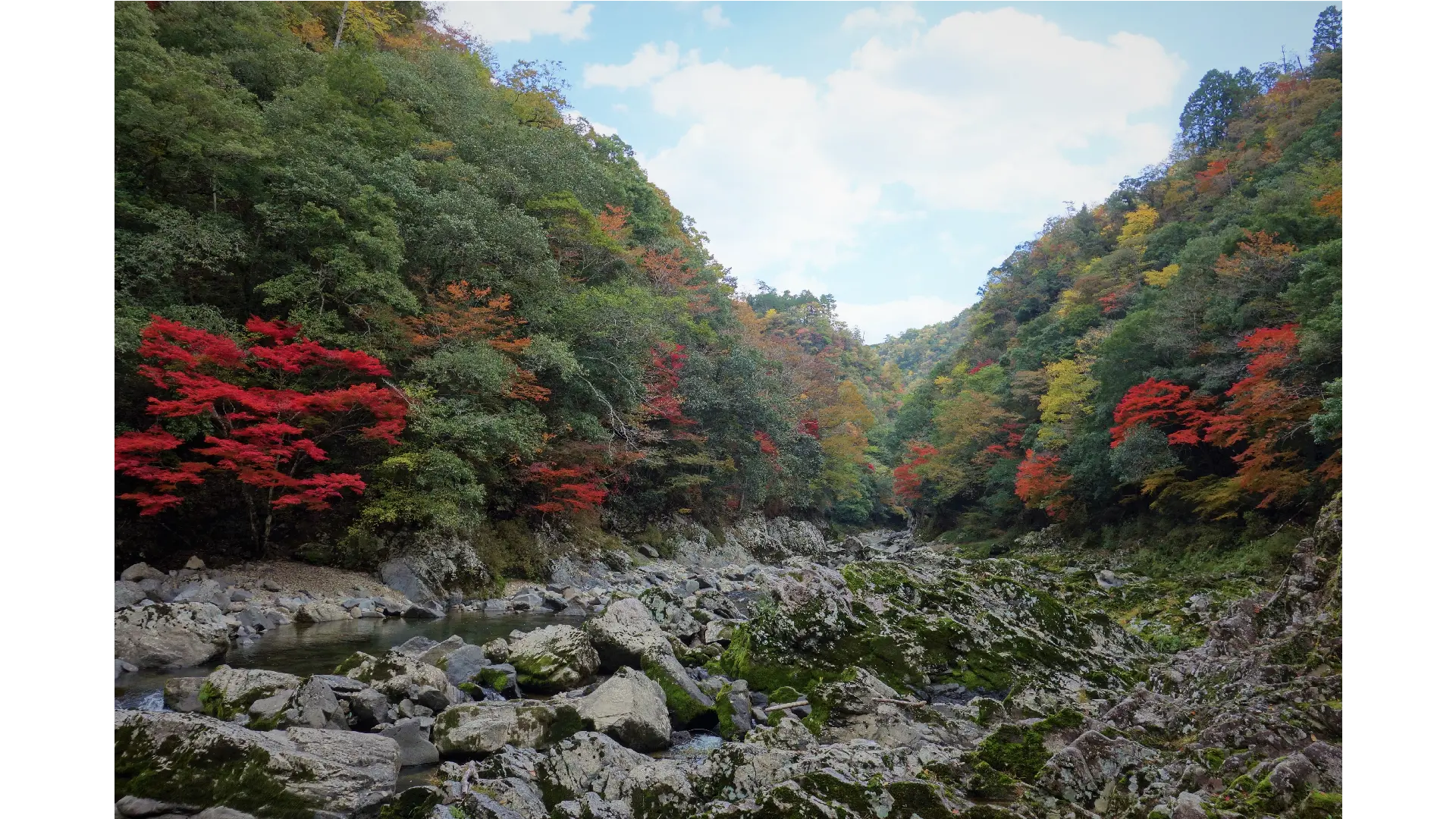 ※遊歩道は、2025年2月より、途中の鈴ヶ茶屋から山口市側入口(道の駅長門峡そば)まで通行止めとなっております※広葉樹が全般です。約5.5kmの遊歩道を散策できます。入口付近に道の駅「長門峡」があります。現在、長門峡中央部で一か所、橋が崩落しており、通り抜けが出来なくなっています。