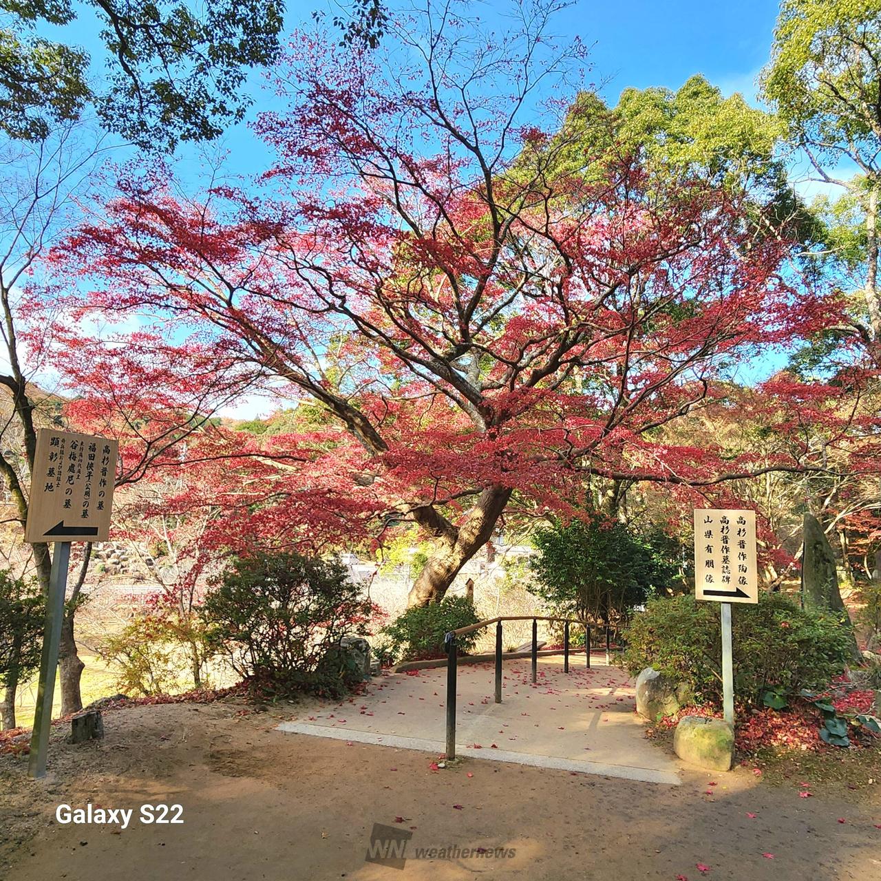東行墓、紅葉谷、高杉晋作銅像・陶像・東行池、推定、樹齢350年の東行楓